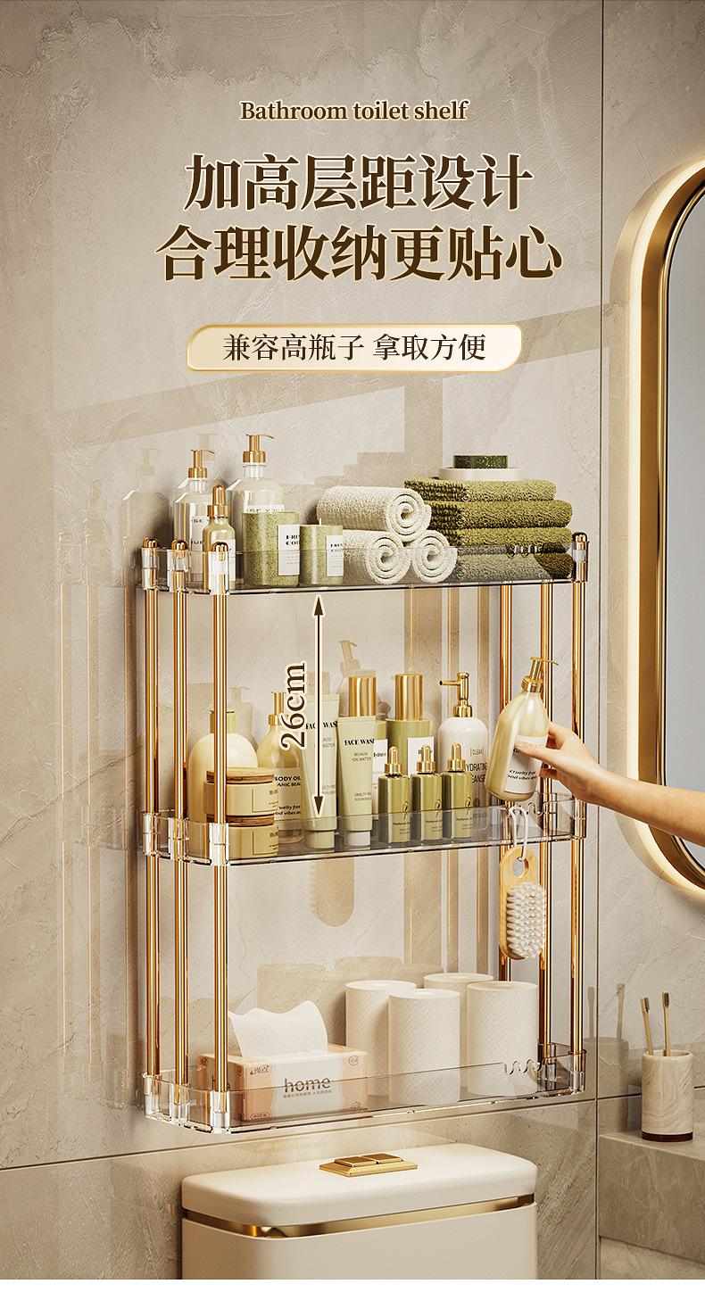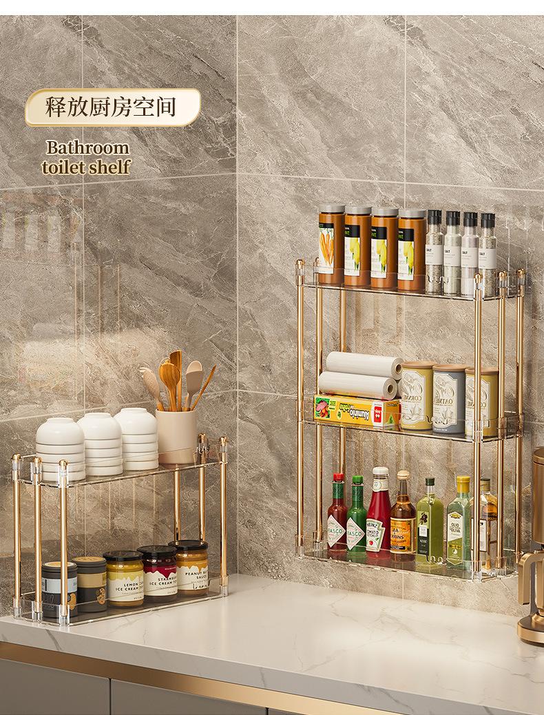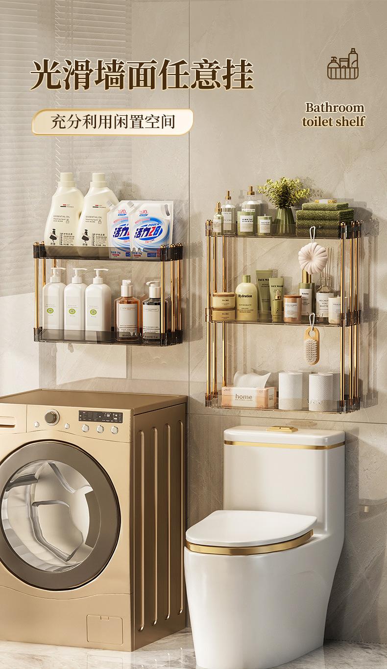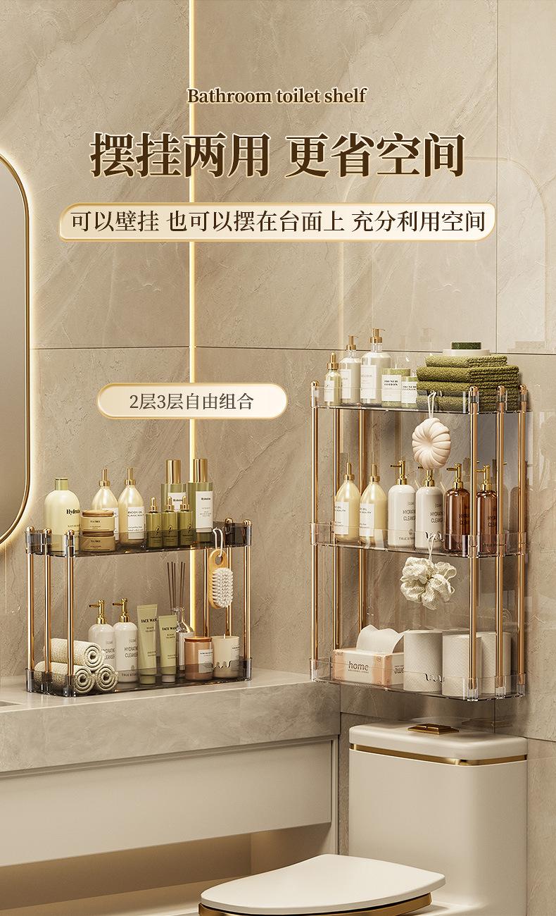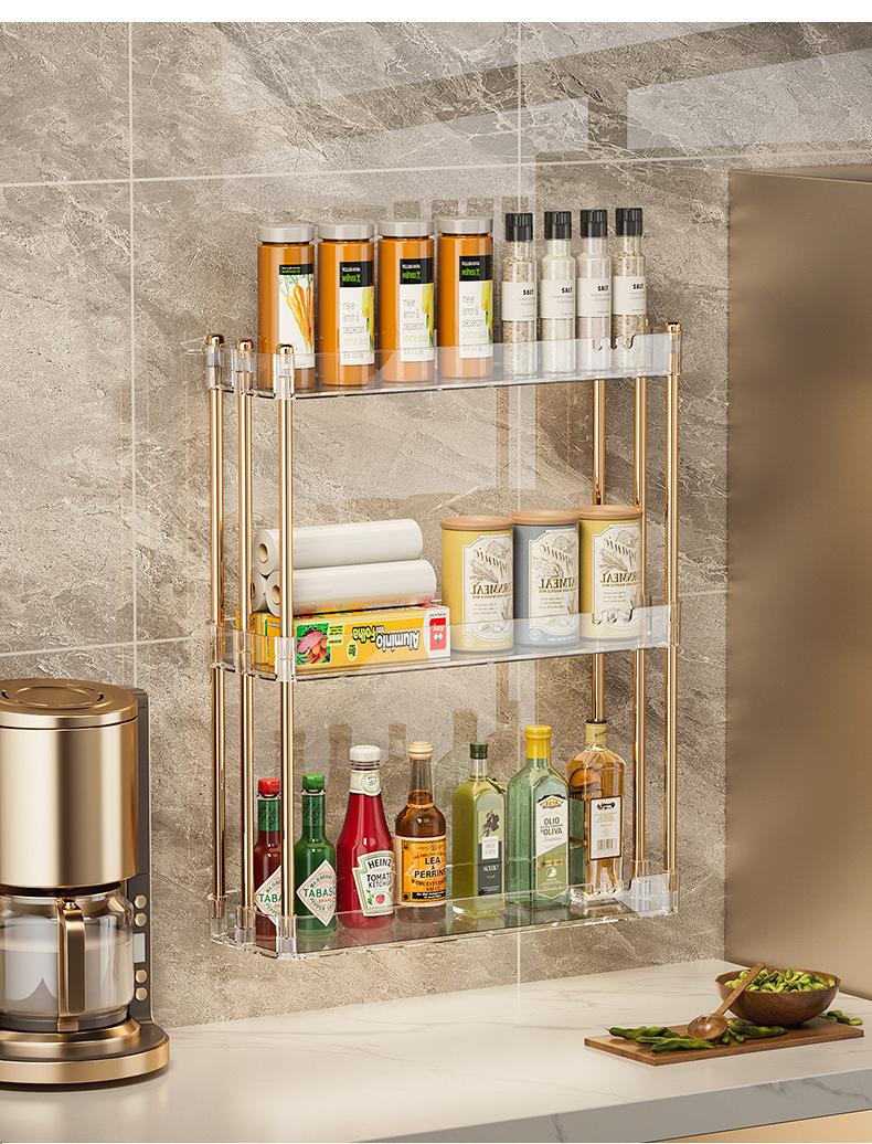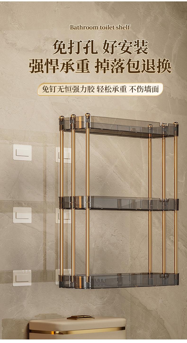 Prateleira de armazenamento transparente de plástico doméstico, banheiro, cozinha, rack de armazenamento montado na parede, armazenamento de duas camadas, rack de armazenamento de três camadas