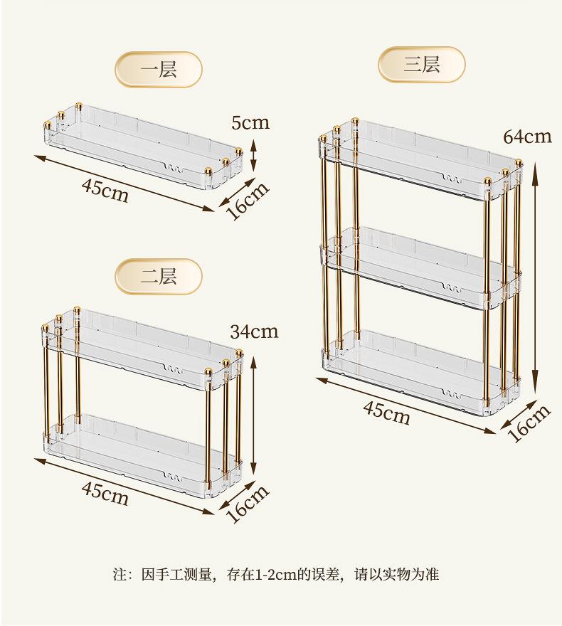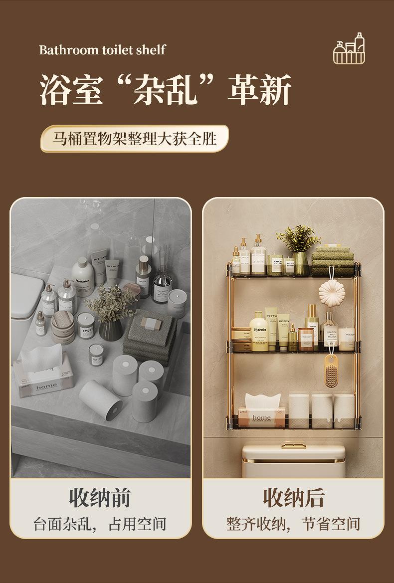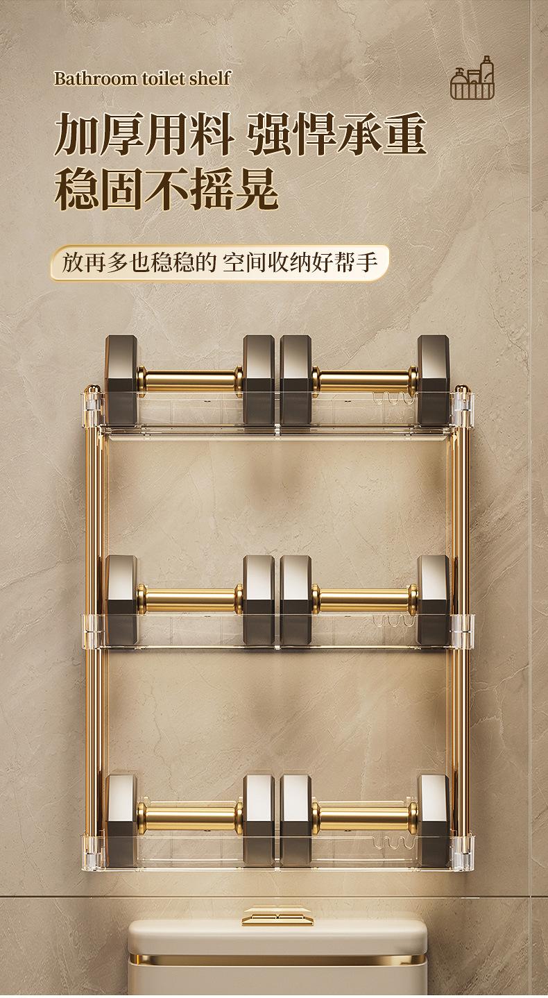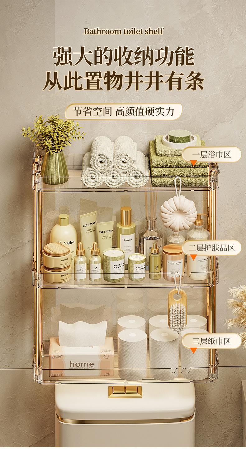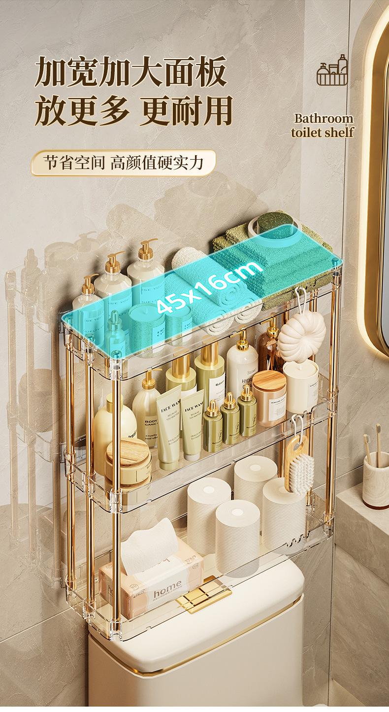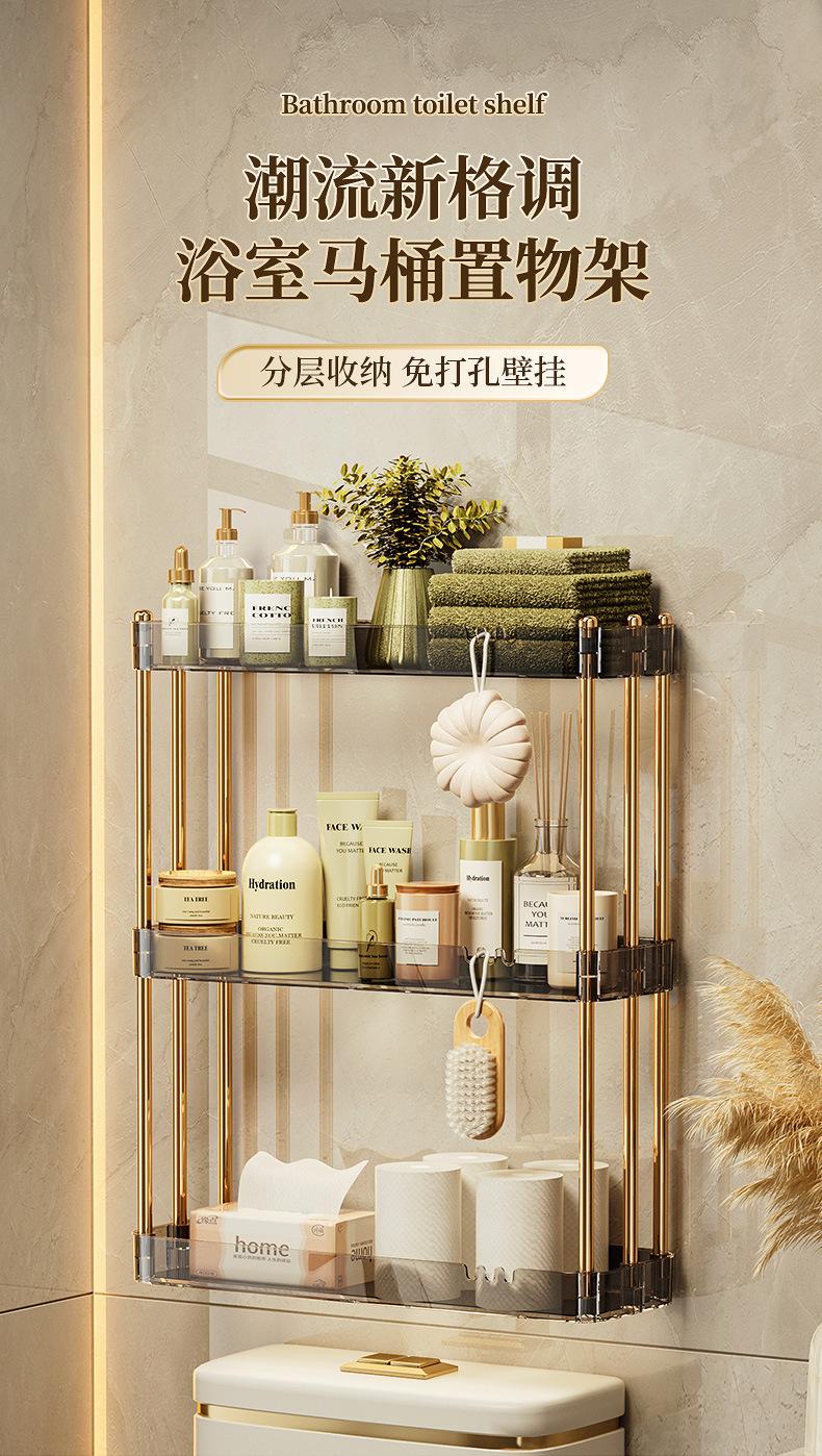 Prateleira de armazenamento transparente de plástico doméstico, banheiro, cozinha, rack de armazenamento montado na parede, armazenamento de duas camadas, rack de armazenamento de três camadas