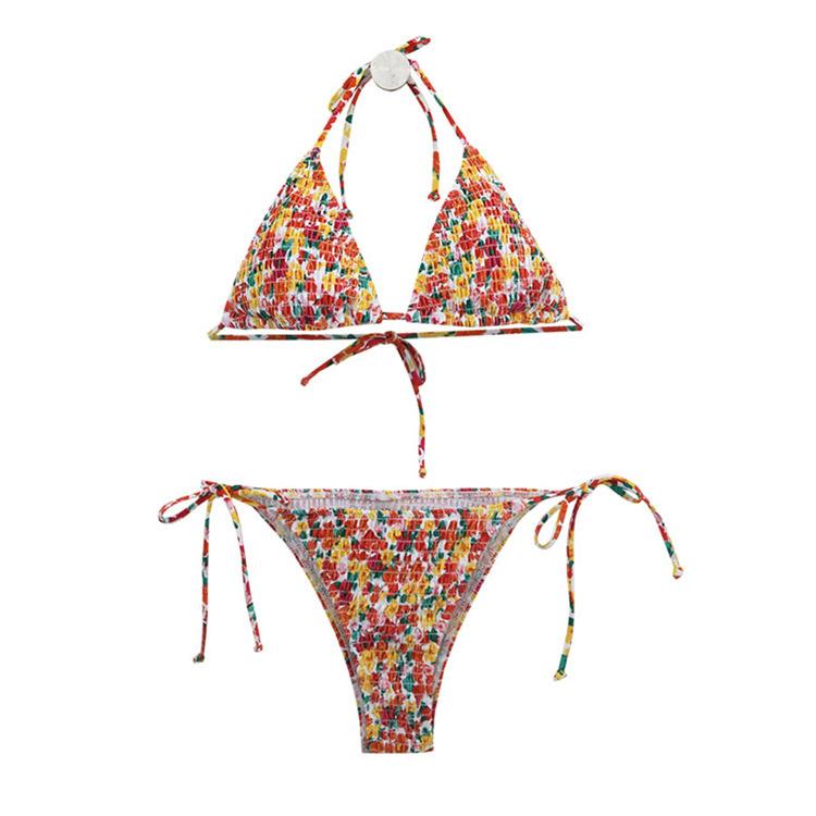 Biquíni Dividido Estampa Colorida Floral Fresco Desejo Puro com Aro Sexy Férias de Praia Estilo Esportivo