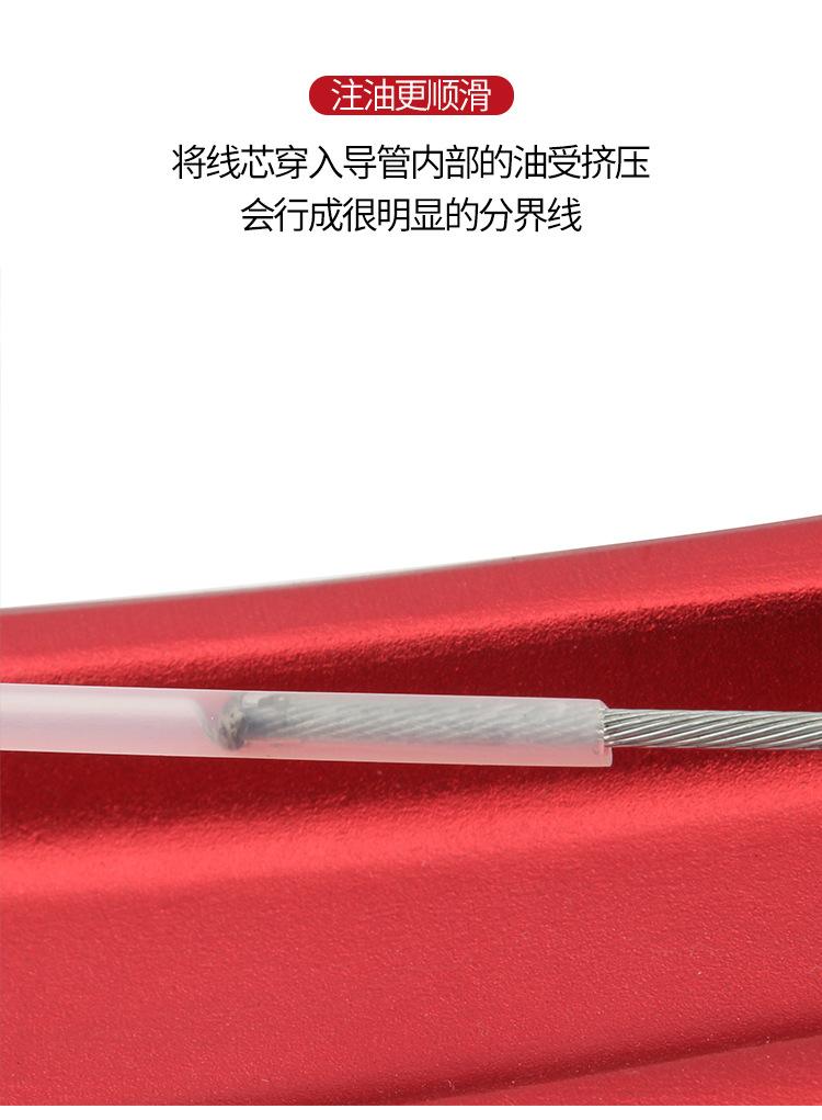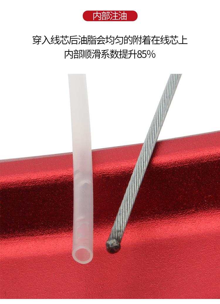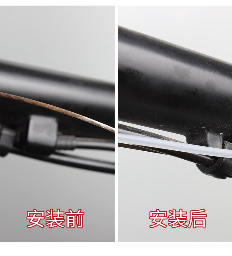 Aplicável: Adequado para estruturas com fiação interna e externa, estradas de montanha, etc., onde a fiação inferior, a fiação externa e os núcleos dos cabos de freio e câmbio são expostos ao exterior, para evitar a contaminação interna dos fios, o que aumentará a resistência e afetará o sinta com o tempo. Ele pode ser usado tanto para freios quanto para mudanças de marcha.
