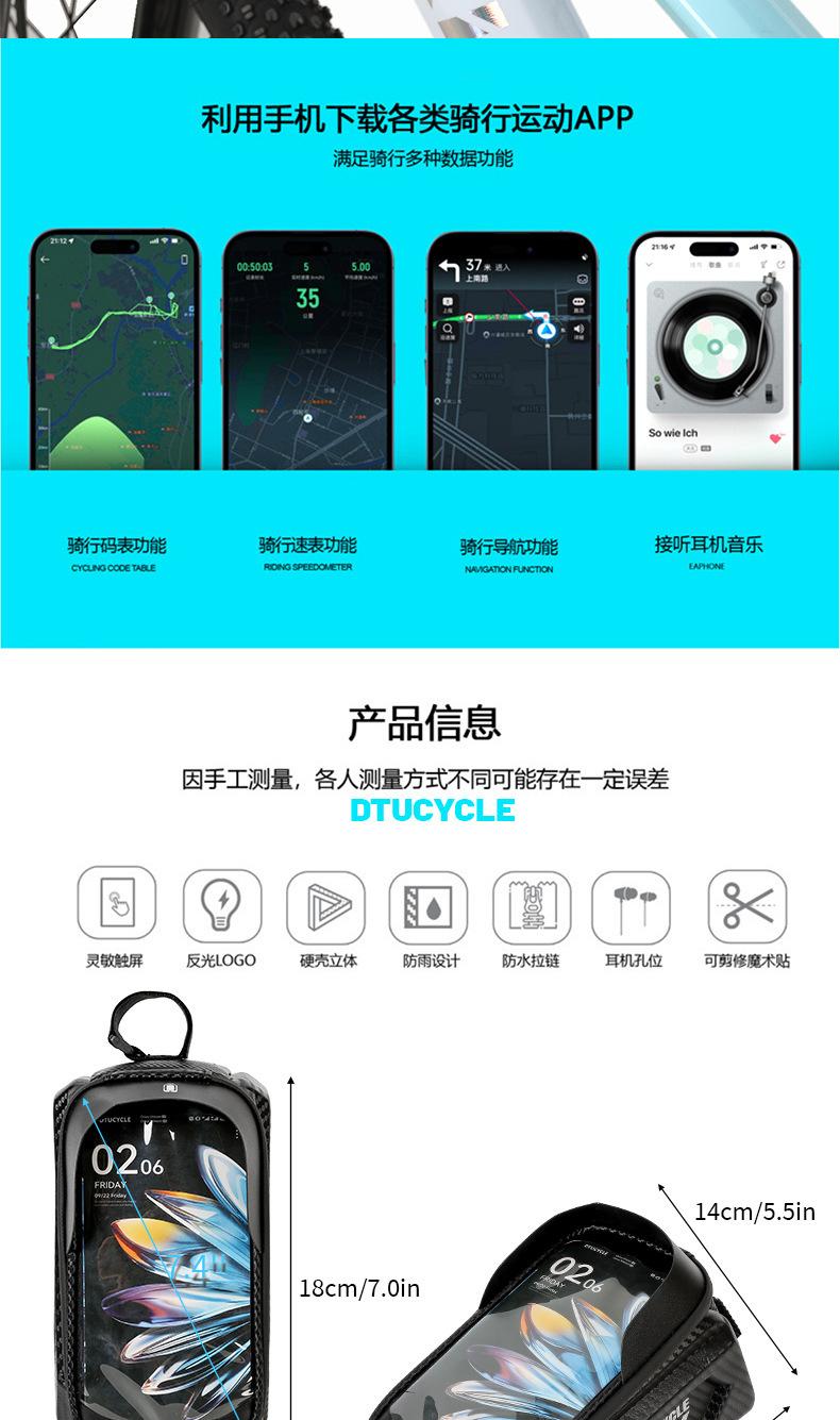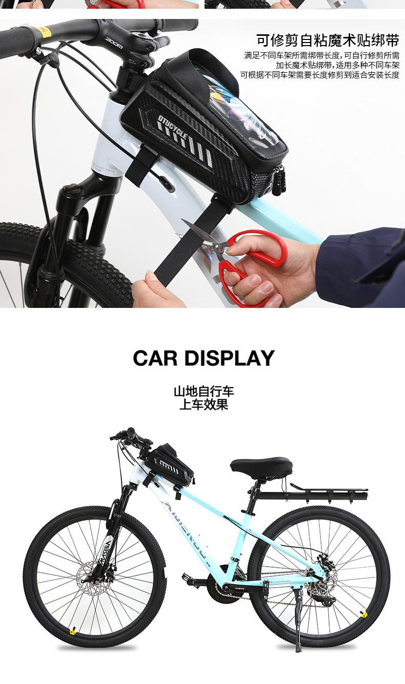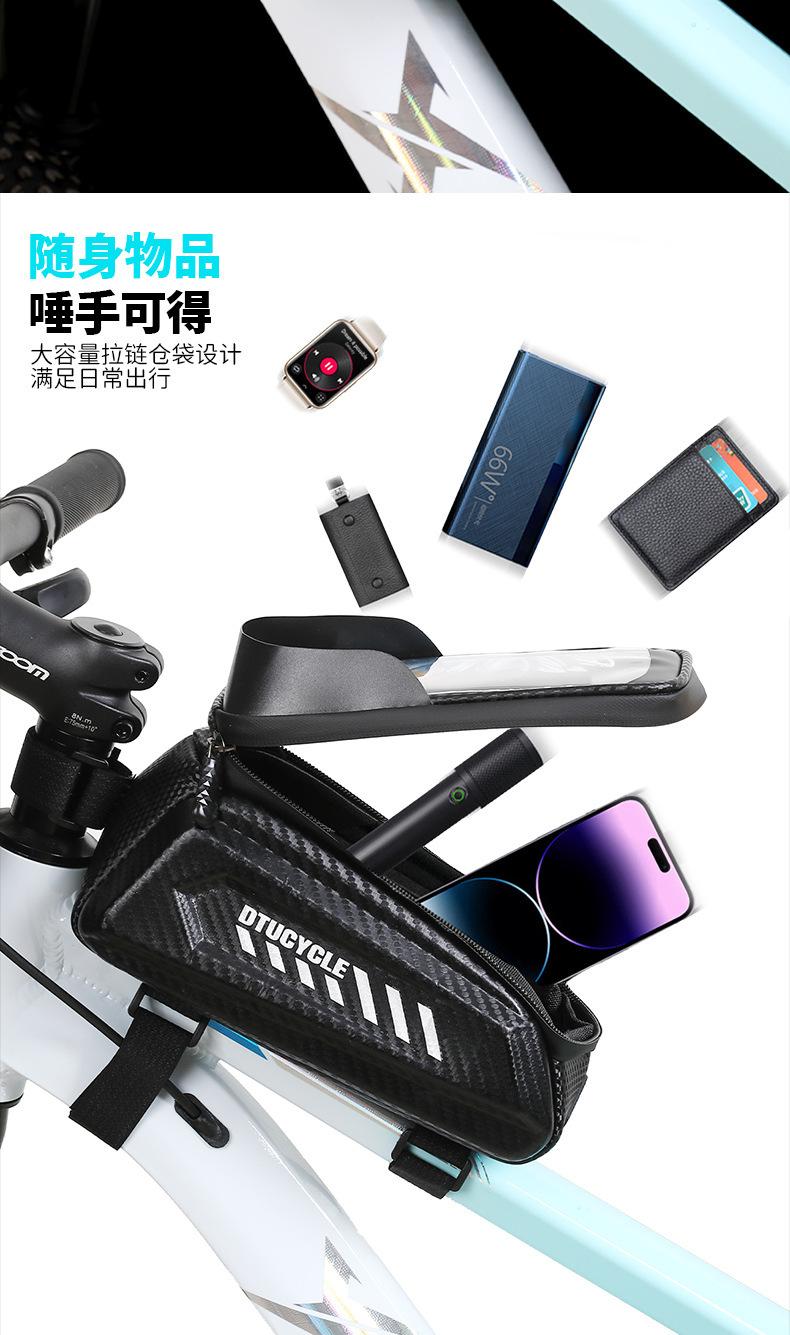 Bolsa para tubo de bicicleta, bolsa para farol dianteiro de bicicleta de montanha, bolsa para cabeça, bolsa para celular à prova d'água, bolsa de selim