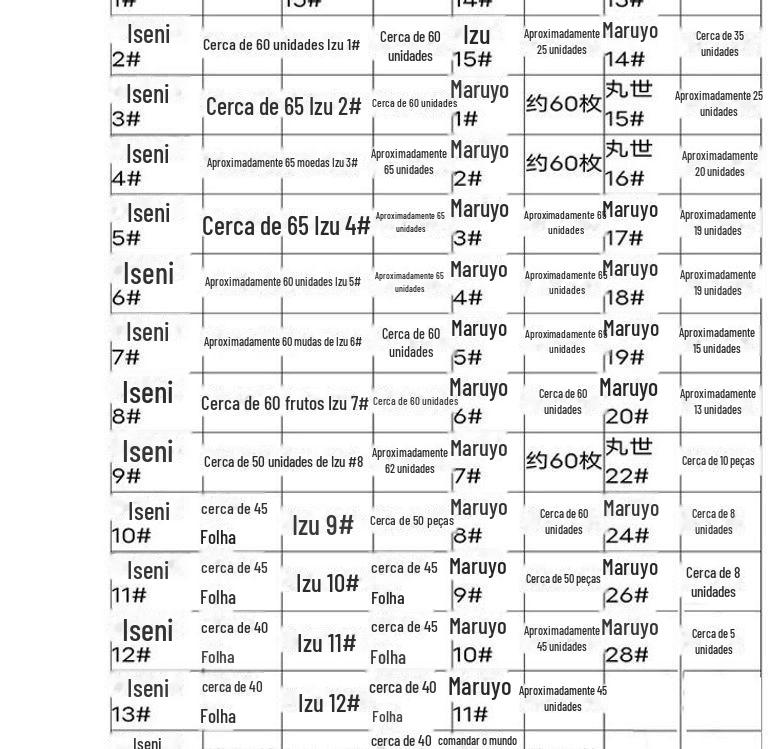 Isany 1#, Isany #2#, Iseki 3#, Isem #4#, Iseki 5#, Ethan 6#, Iseki 7#, Iseki 8#, Iseki 9#, Iseki 10#, Ethan 11...