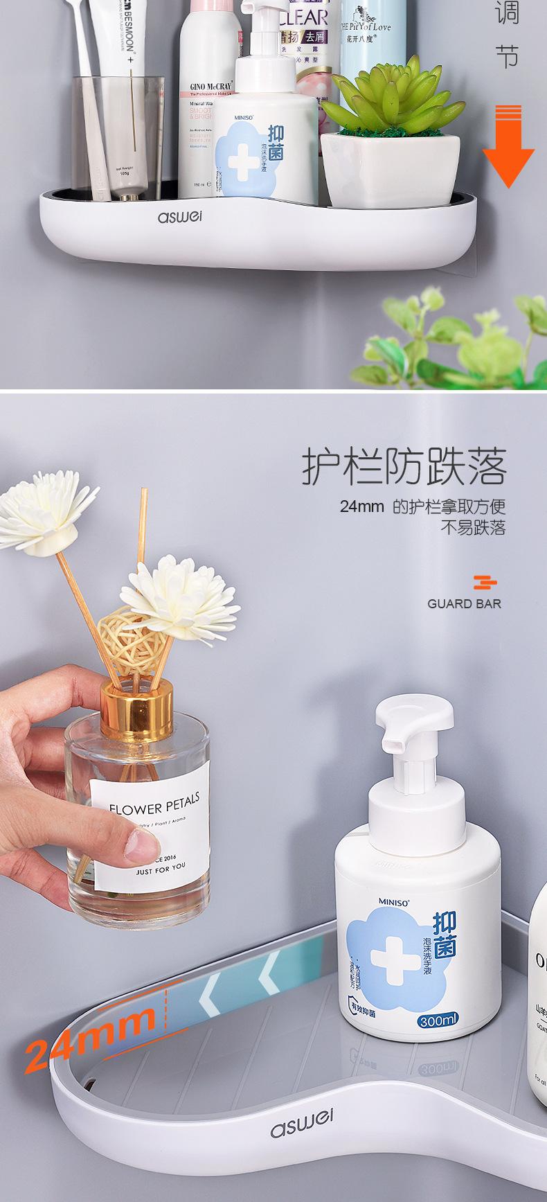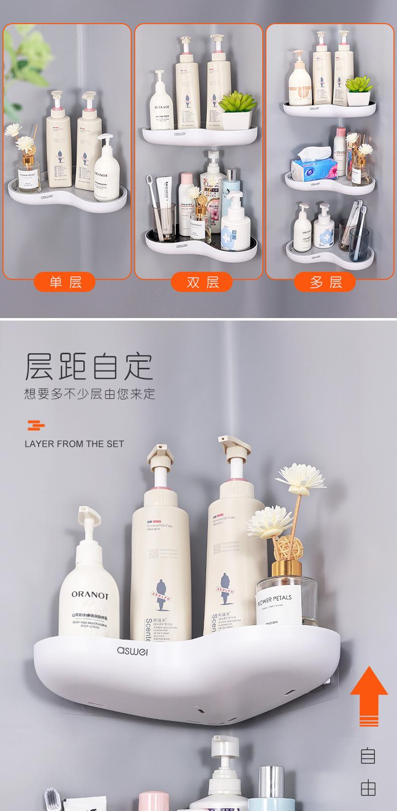 Rack de armazenamento Vaso sanitário sem punção Rack de armazenamento triangular Vaso sanitário de canto montado na parede Artefato de armazenamento de banheiro de camada dupla