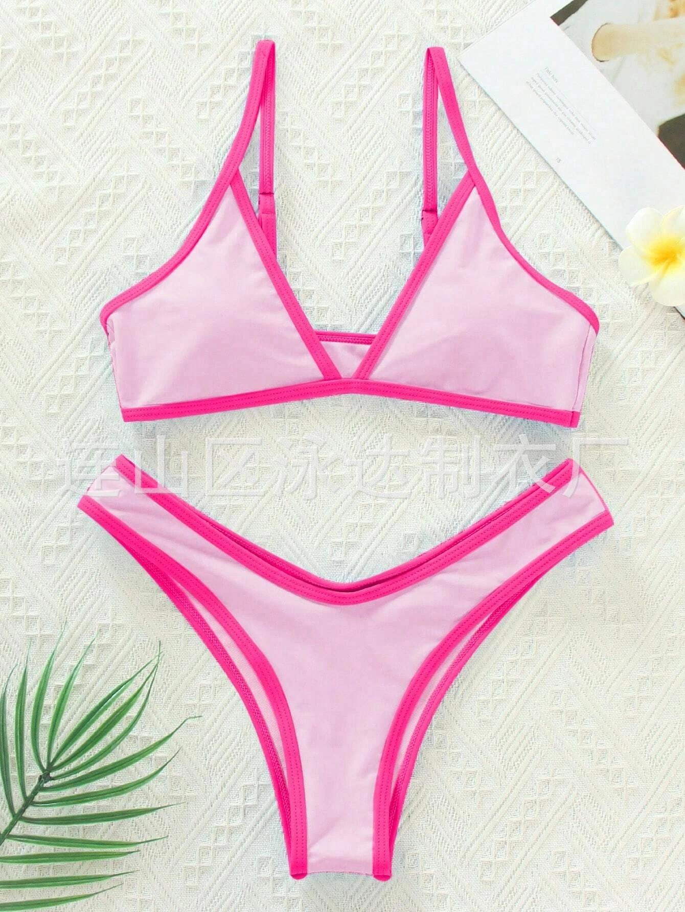 Novo sexy biquíni split terno contraste cor swimsuit moda feminina fábrica atacado exportação moda maiô