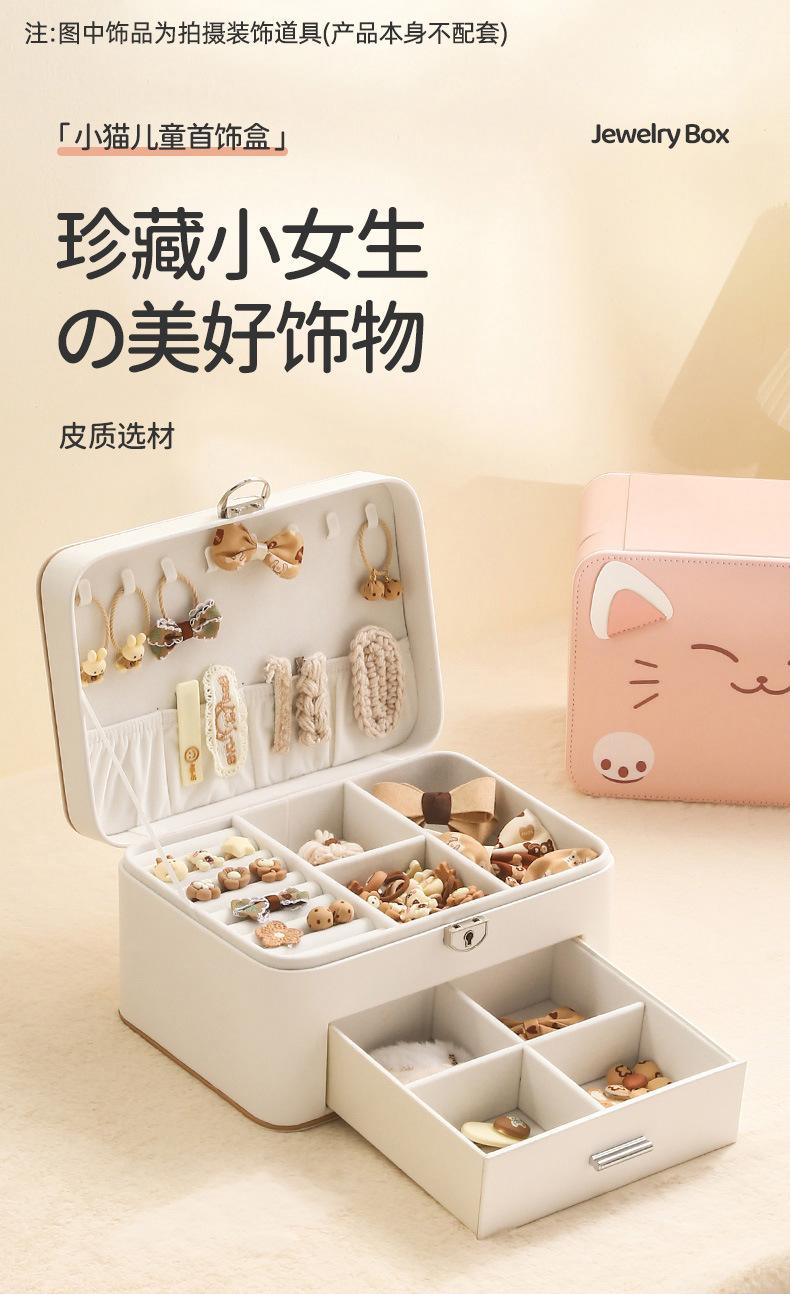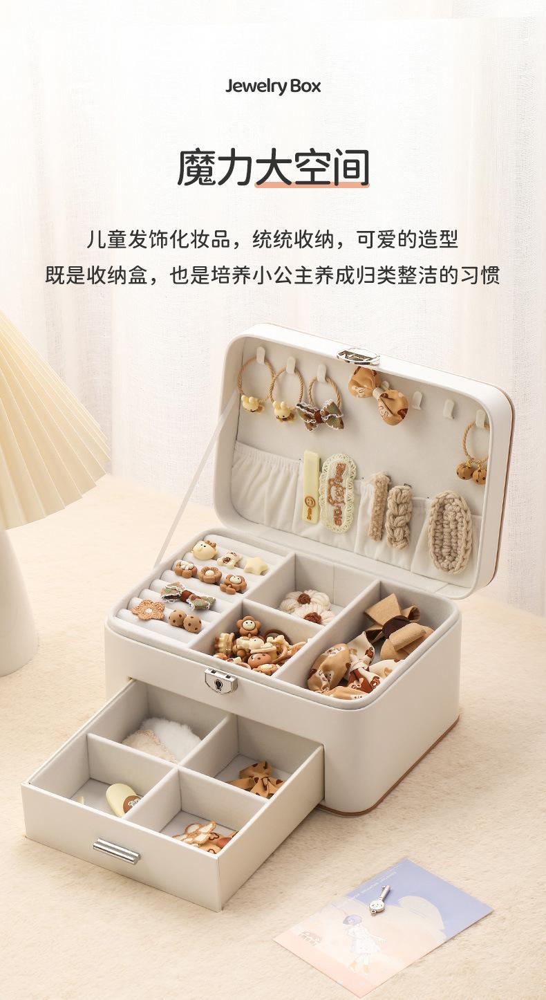 Caixa de joias infantis de camada dupla de cabelo Acessórios Caixa de armazenamento Menina princesa headwear Rubber Band Birthday Gift Hairpin caixa de joias