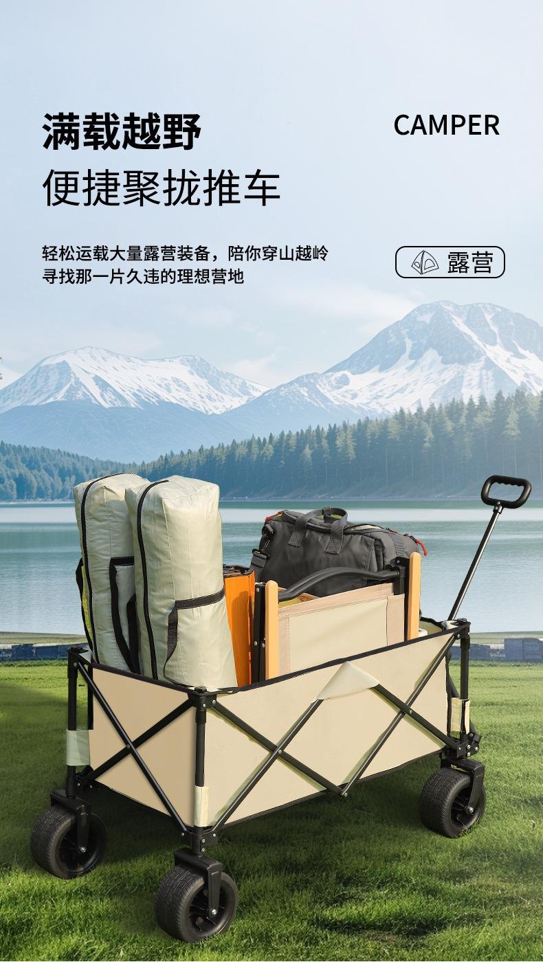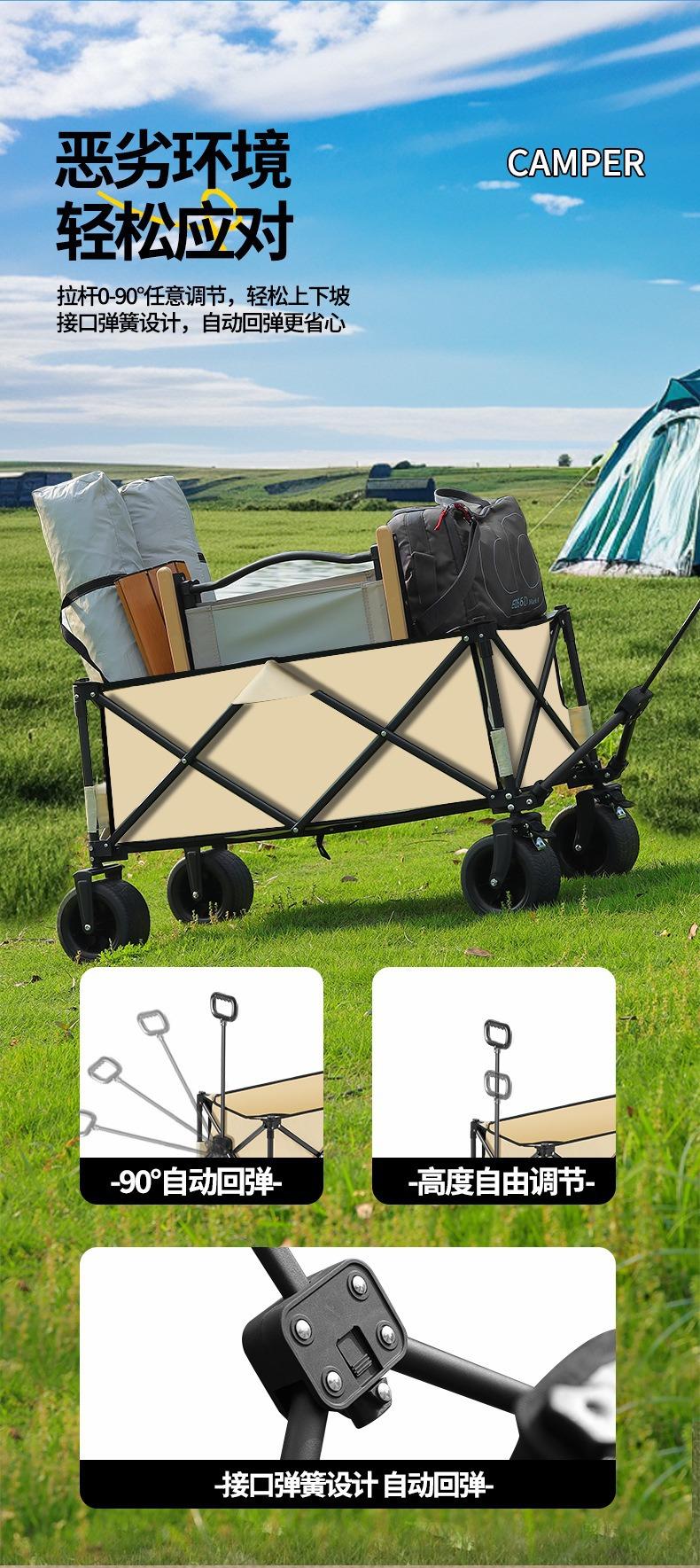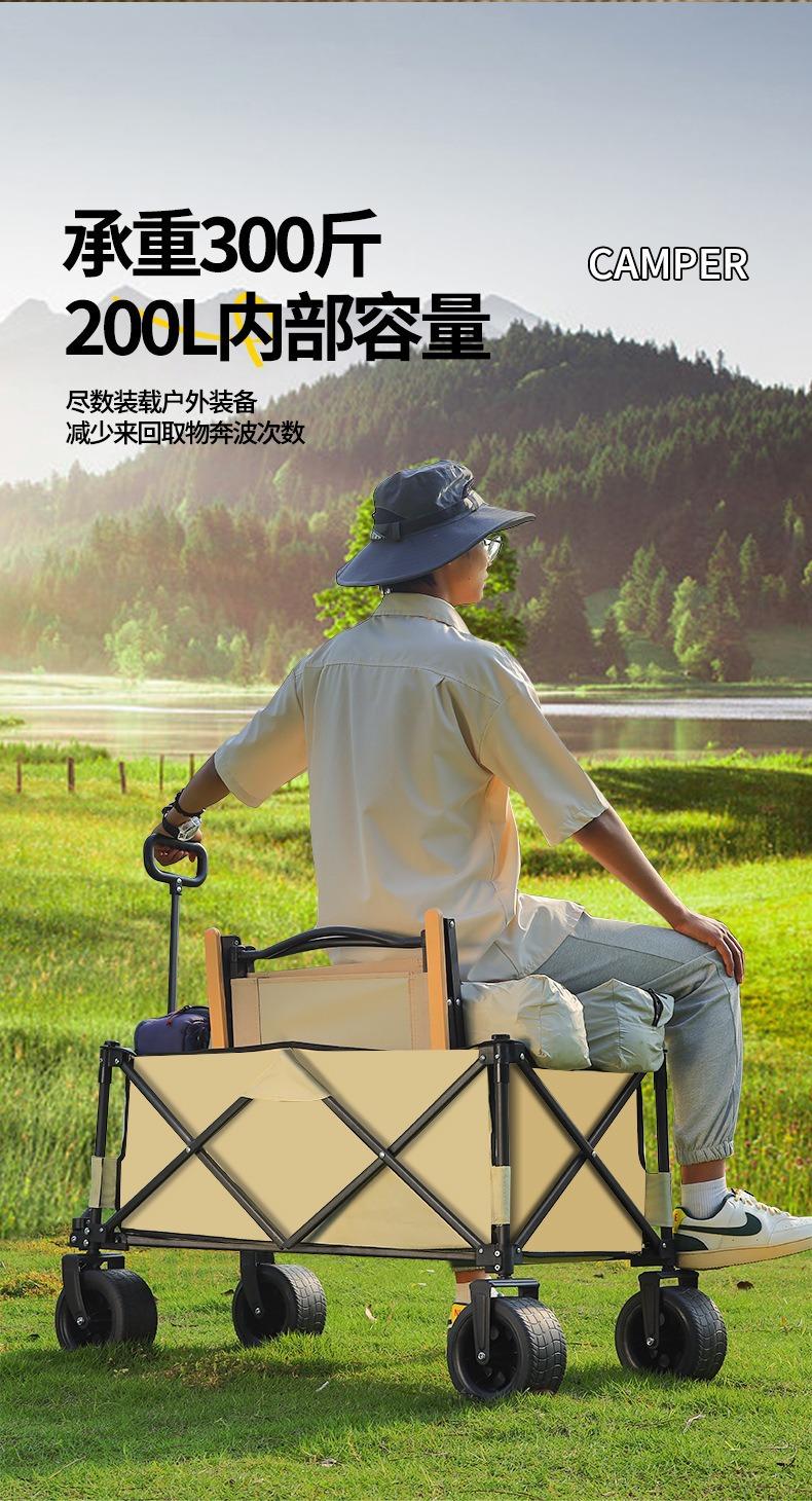 Carrinho de Acampamento ao Ar Livre, Carrinho de Barraca Dobrável, Carrinho de Compras de Grande Capacidade com Abertura Traseira, Trailer de Acampamento Portátil