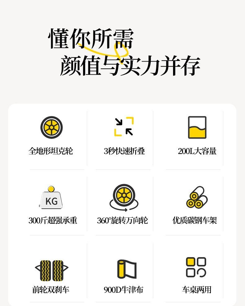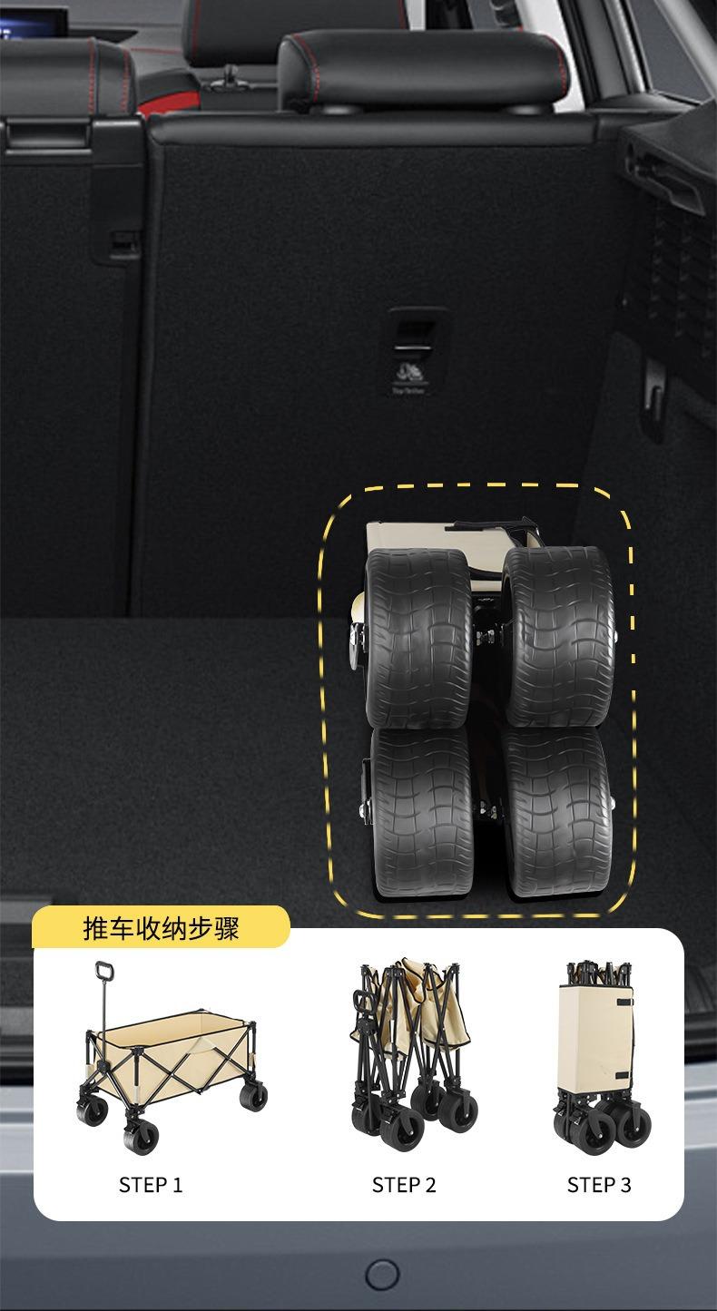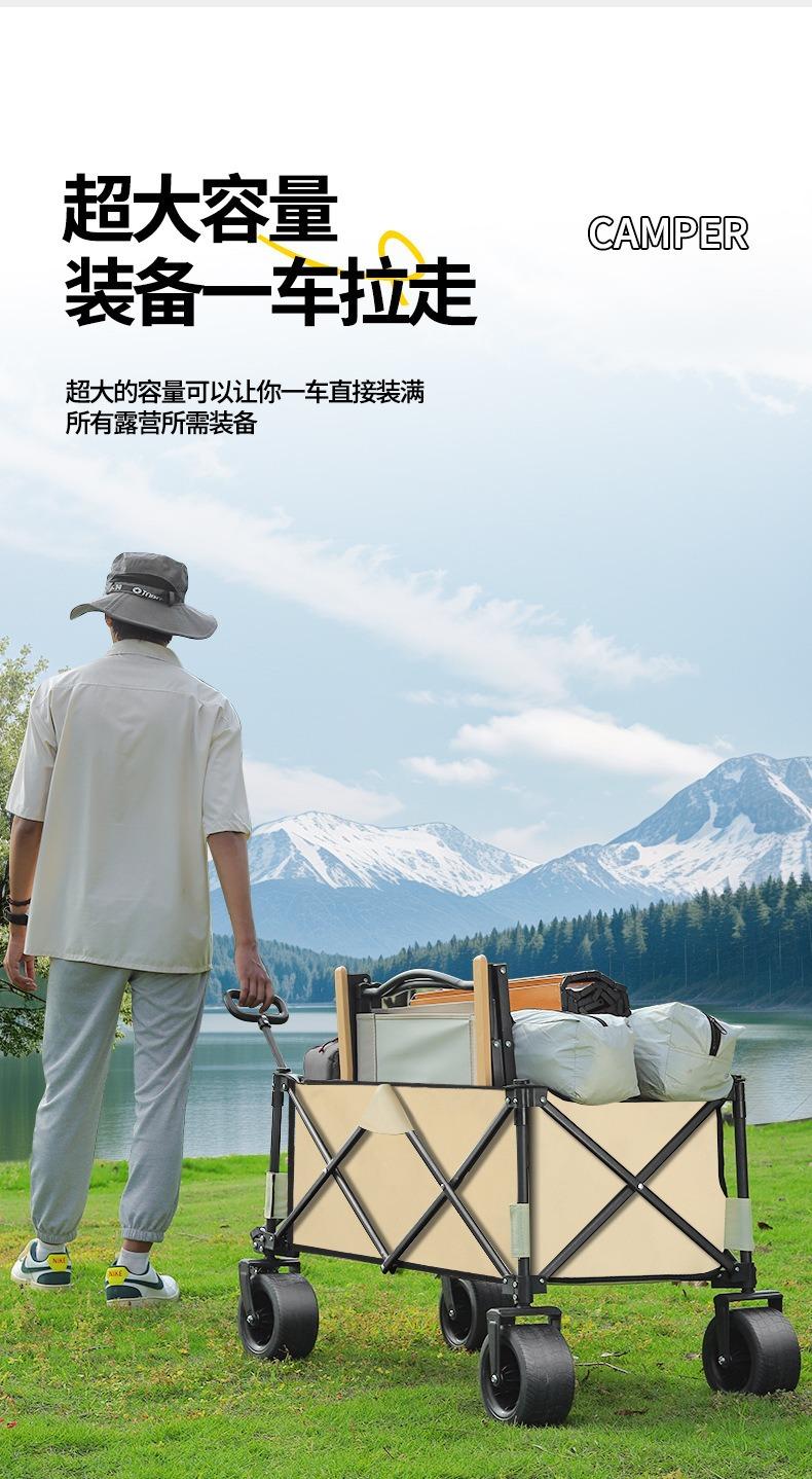 Carrinho de Acampamento ao Ar Livre, Carrinho de Barraca Dobrável, Carrinho de Compras de Grande Capacidade com Abertura Traseira, Trailer de Acampamento Portátil