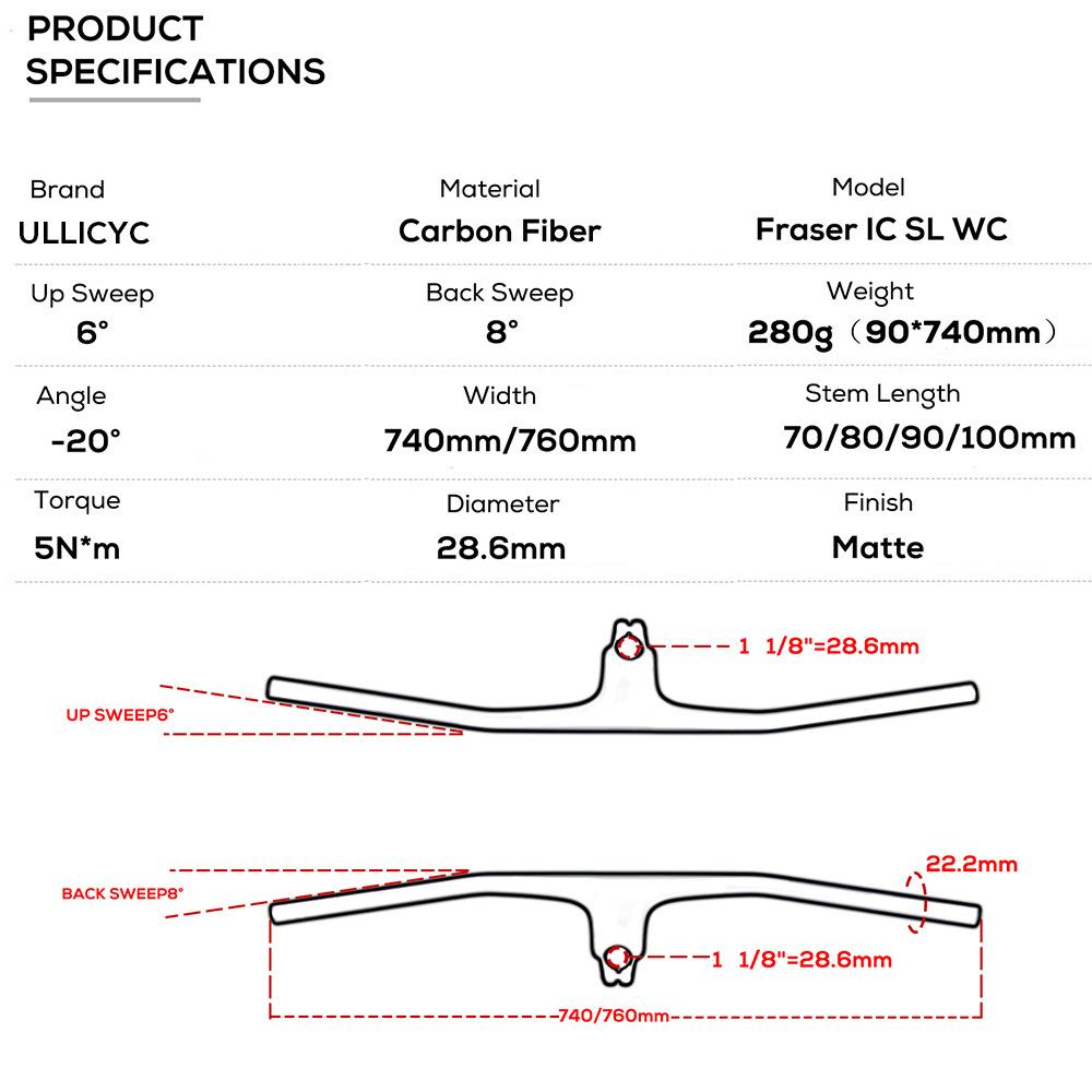 Características: Guidão e mesa integrados de fibra de carbono de nível XC World Cup