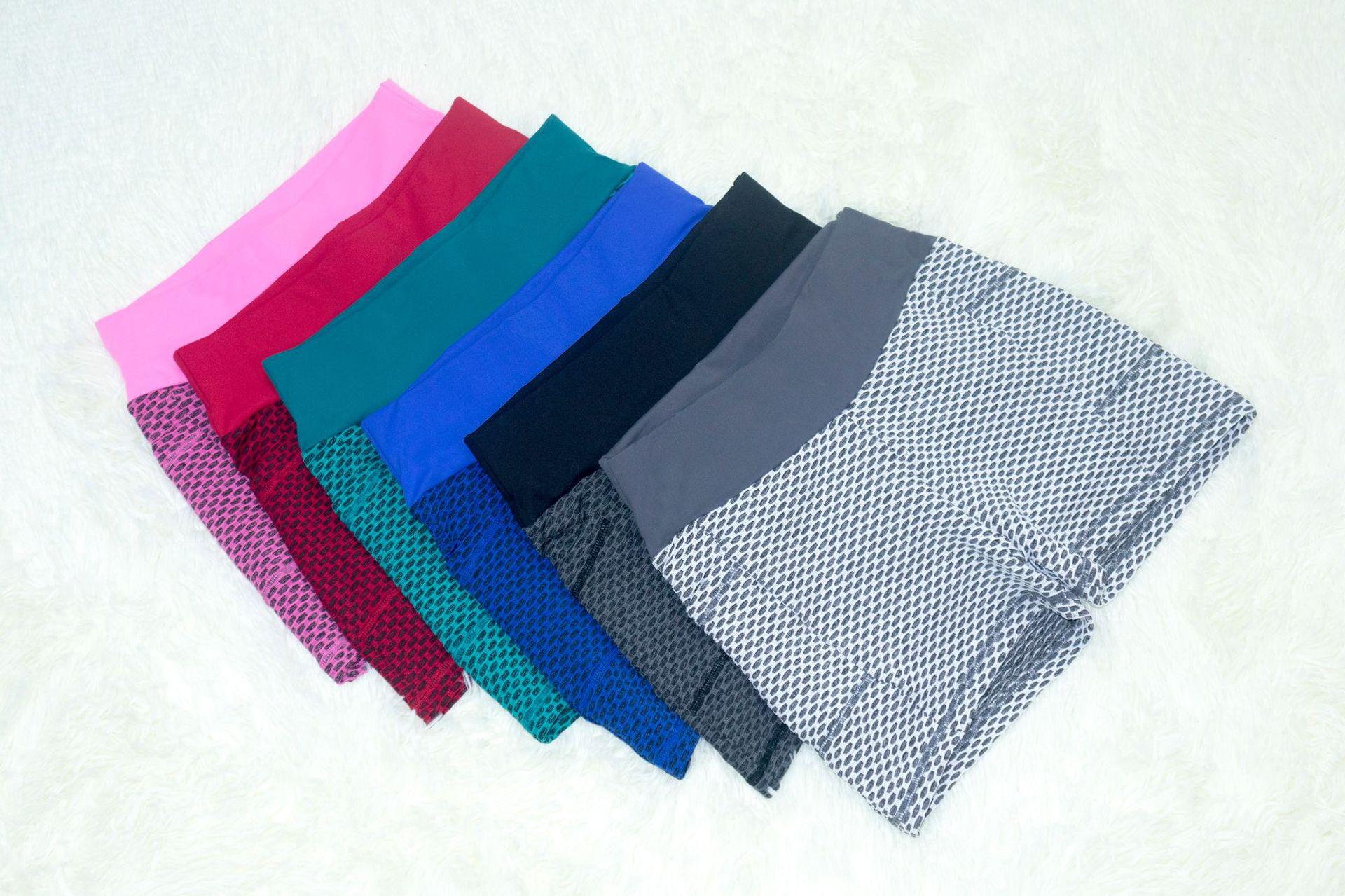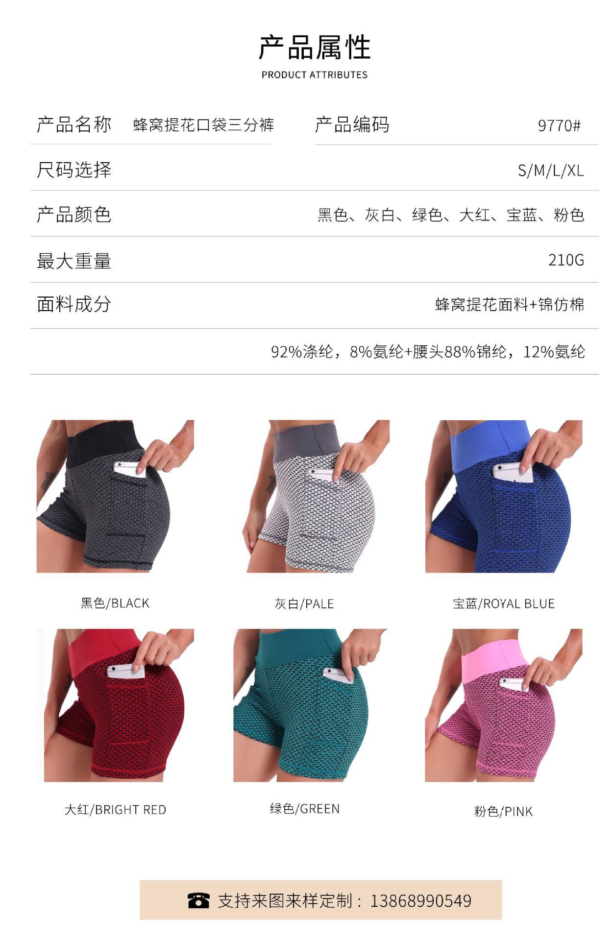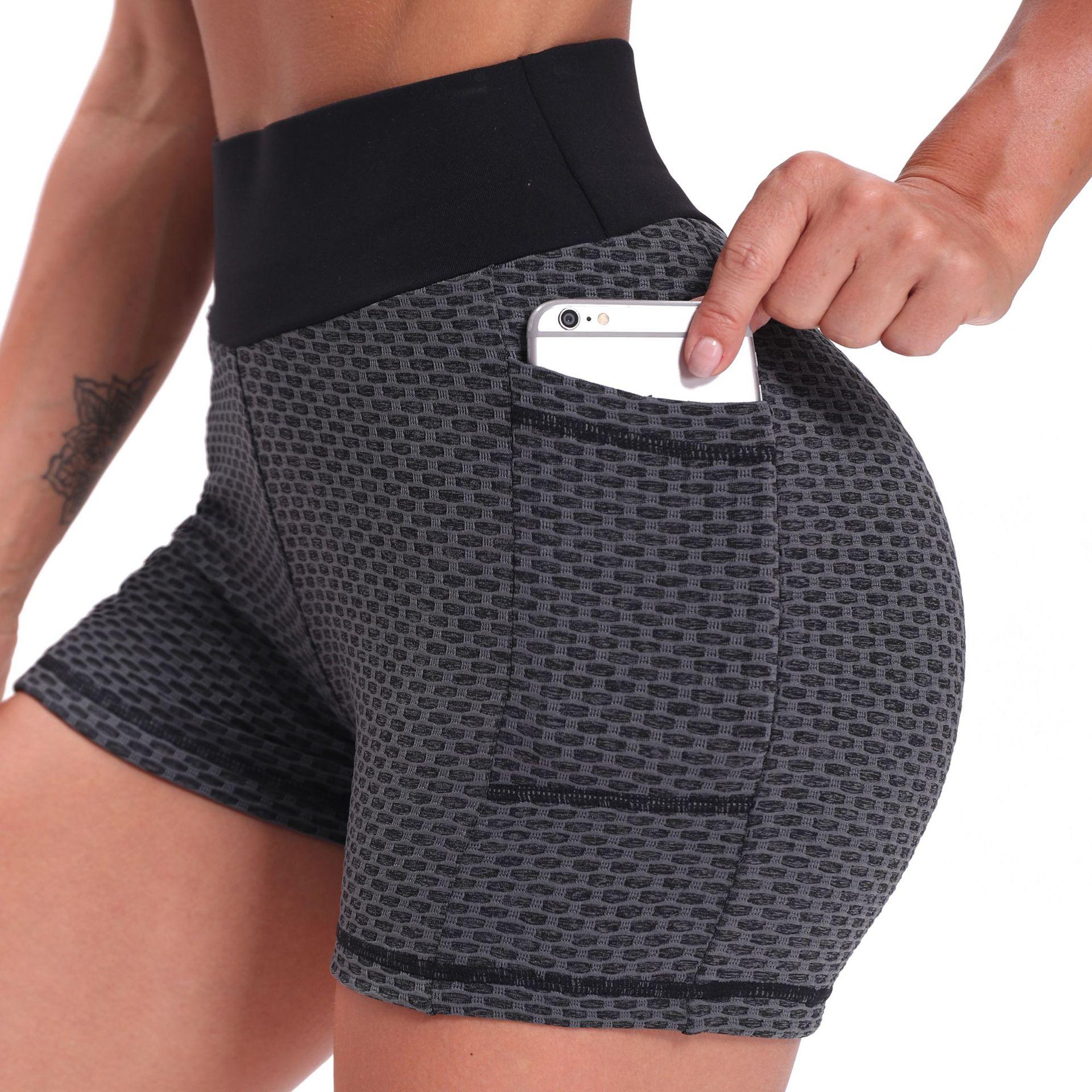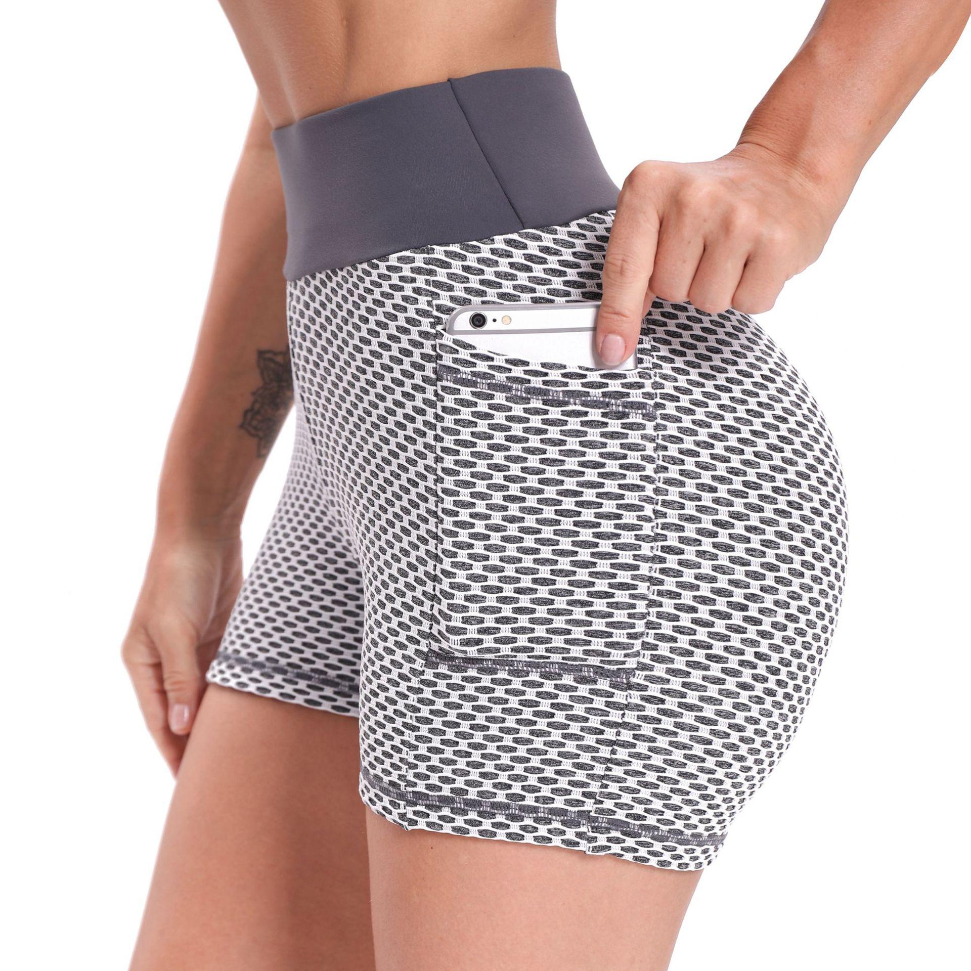 Compre Calças de Corrida de Cintura Alta Femininas para Esportes e Fitness Europeias e Americanas, Calças com Bolso Aba Levanta Bumbum, Calças Ciclismo Bolha, Calças Yoga Três Quartos Favo de Mel para Exterior no atacado no Joom.pro