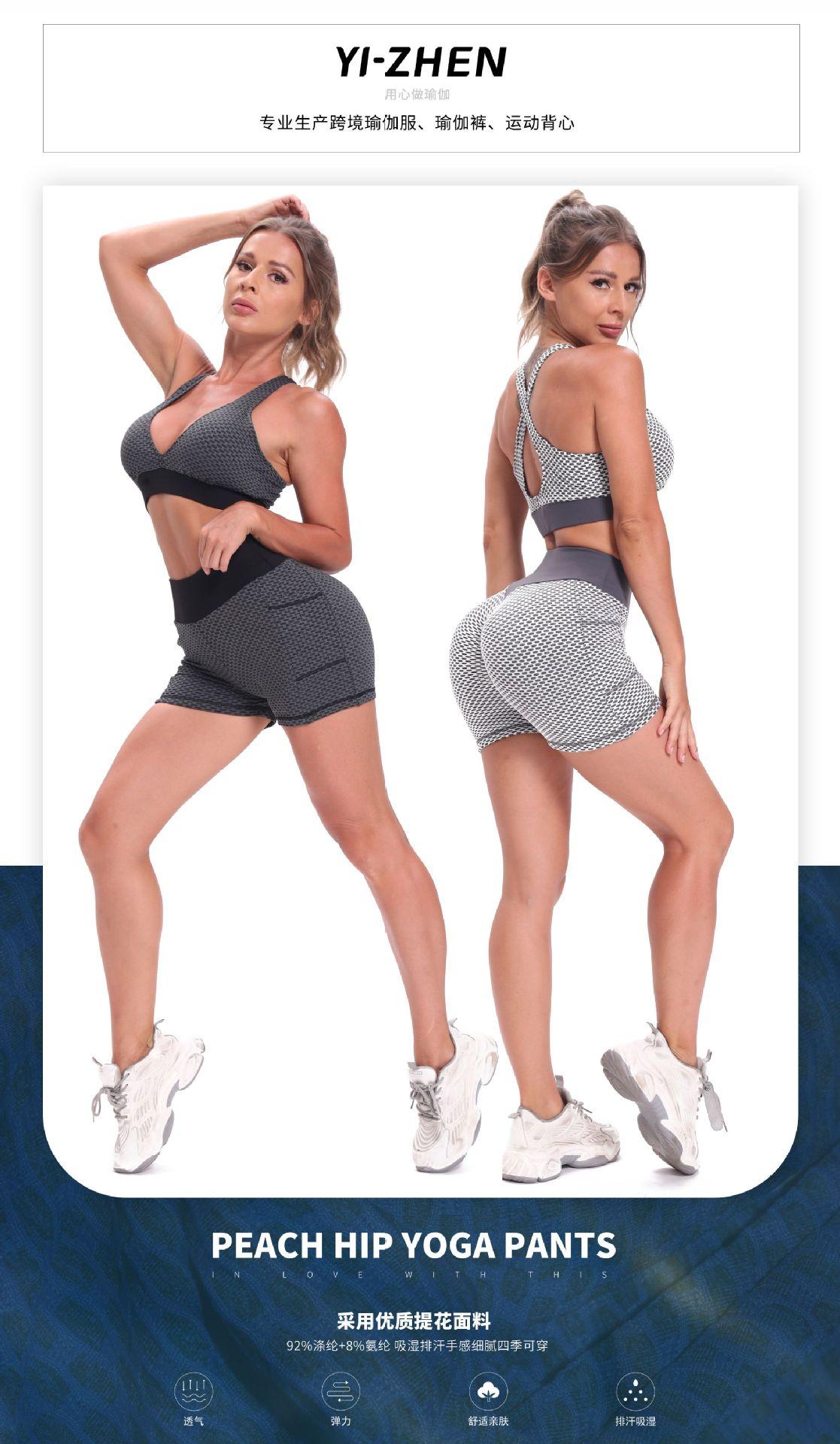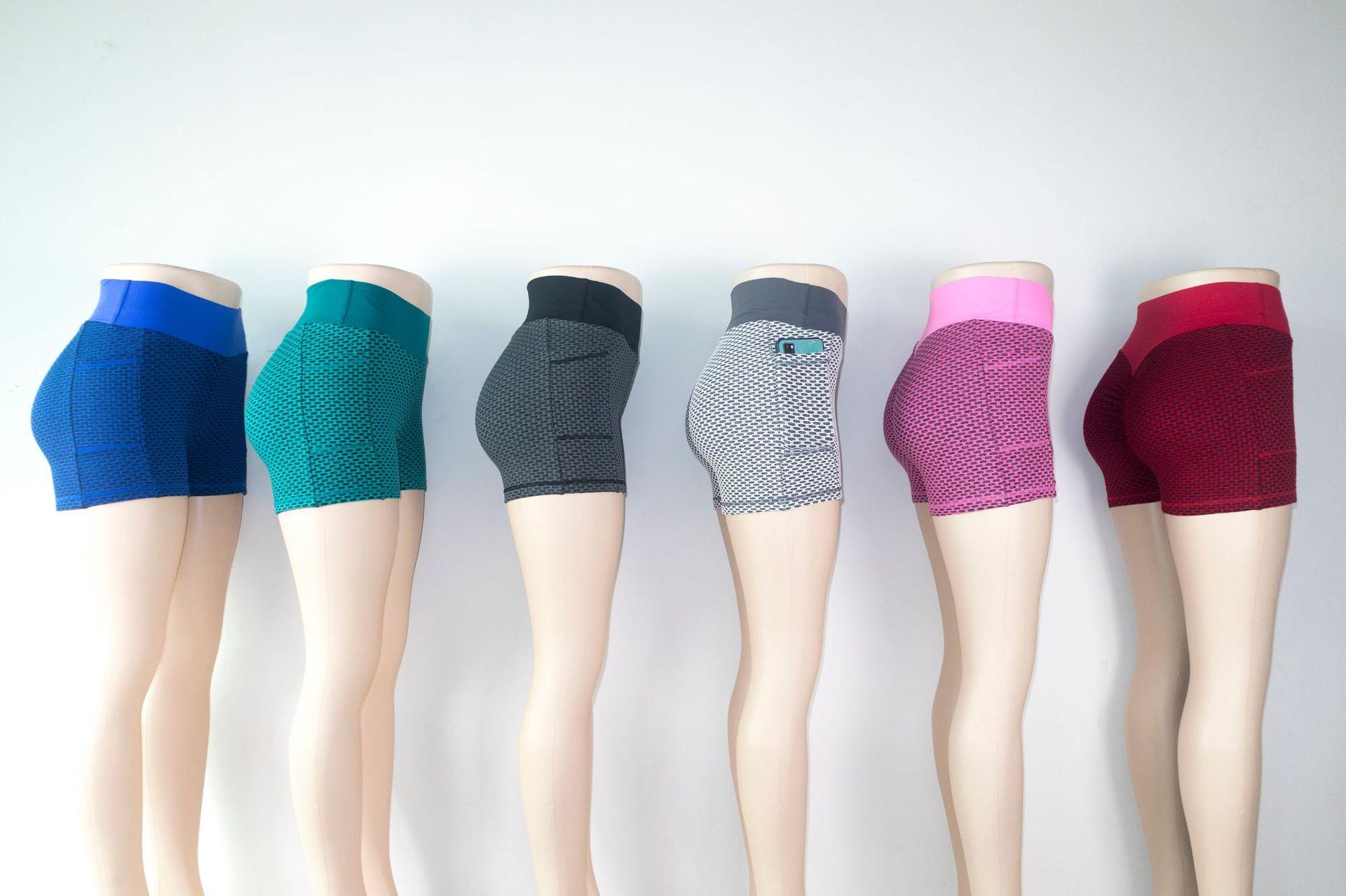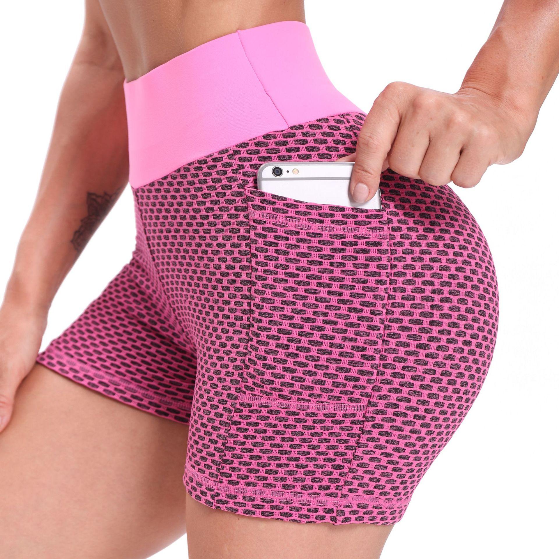 Compre Calças de Corrida de Cintura Alta Femininas para Esportes e Fitness Europeias e Americanas, Calças com Bolso Aba Levanta Bumbum, Calças Ciclismo Bolha, Calças Yoga Três Quartos Favo de Mel para Exterior no atacado no Joom.pro