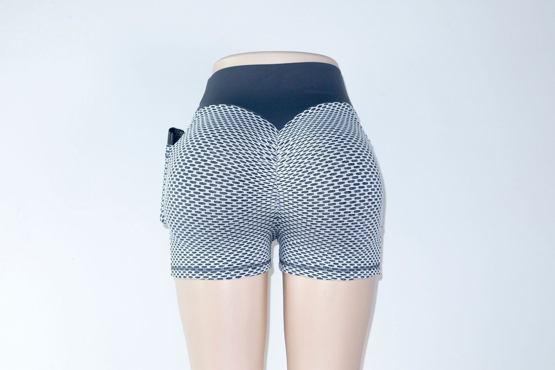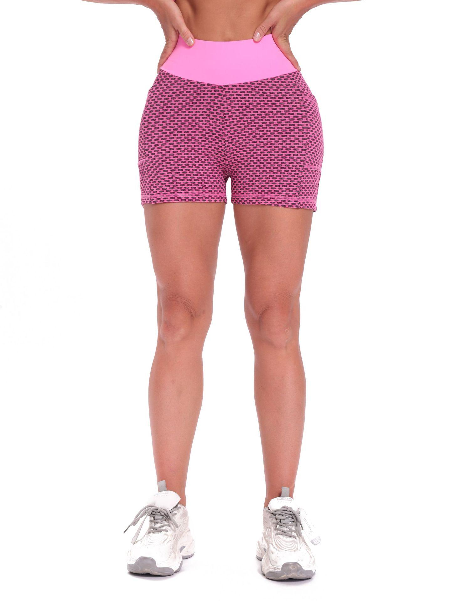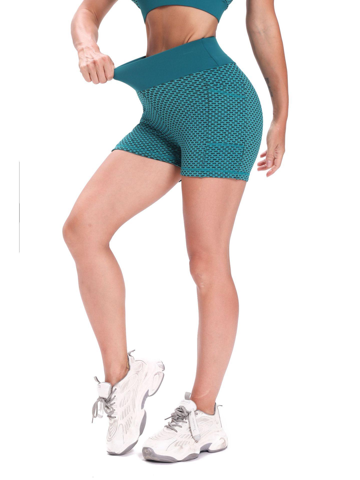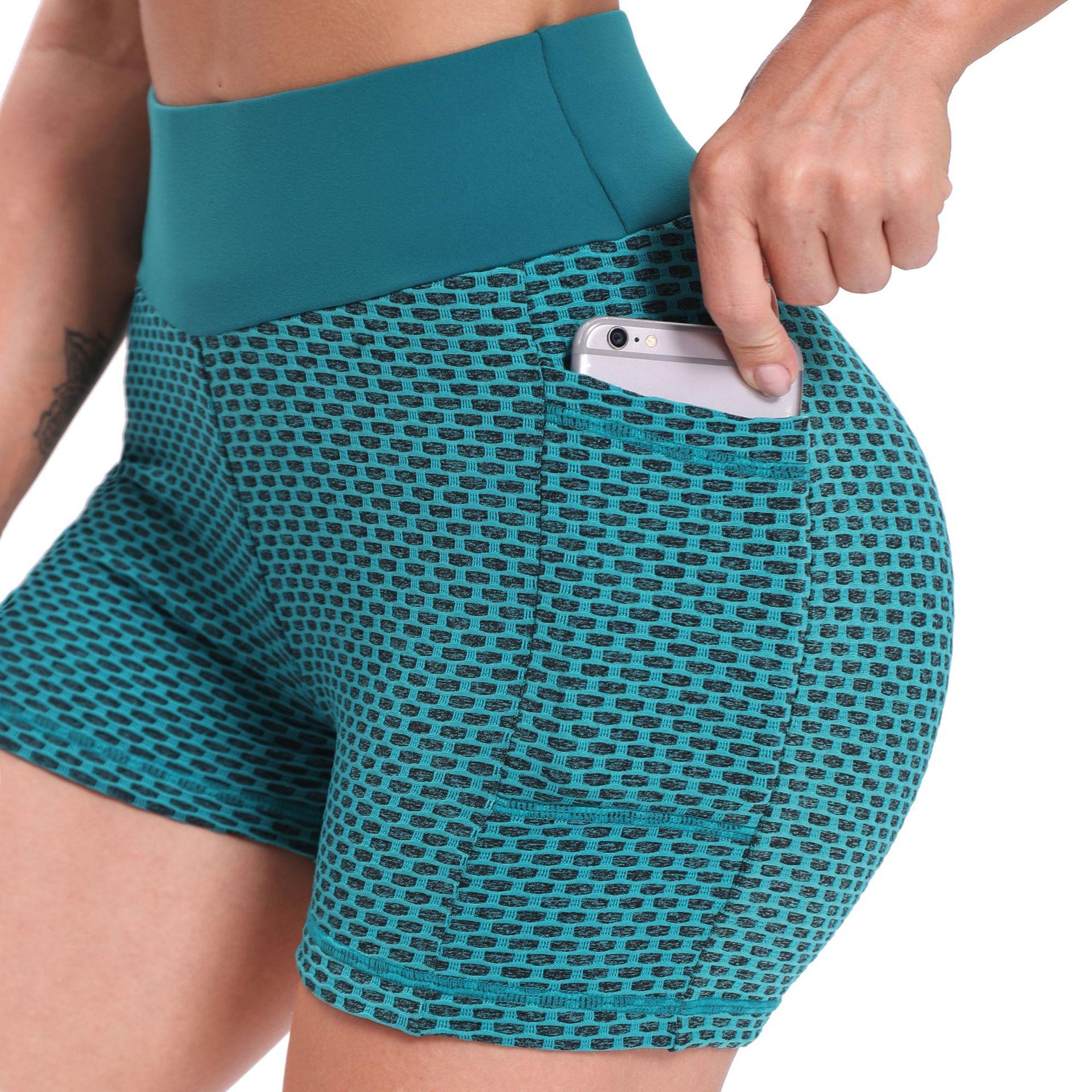 Compre Calças de Corrida de Cintura Alta Femininas para Esportes e Fitness Europeias e Americanas, Calças com Bolso Aba Levanta Bumbum, Calças Ciclismo Bolha, Calças Yoga Três Quartos Favo de Mel para Exterior no atacado no Joom.pro