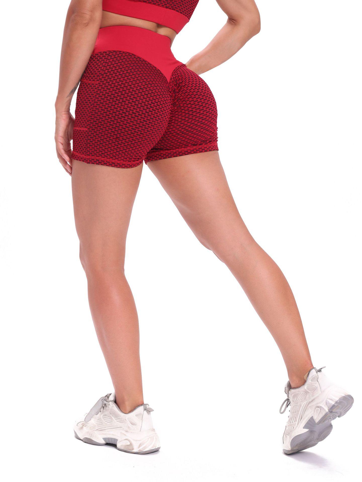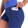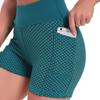 Calças de Corrida de Cintura Alta Femininas para Esportes e Fitness Europeias e Americanas, Calças com Bolso Aba Levanta Bumbum, Calças Ciclismo Bolha, Calças Yoga Três Quartos Favo de Mel para Exterior