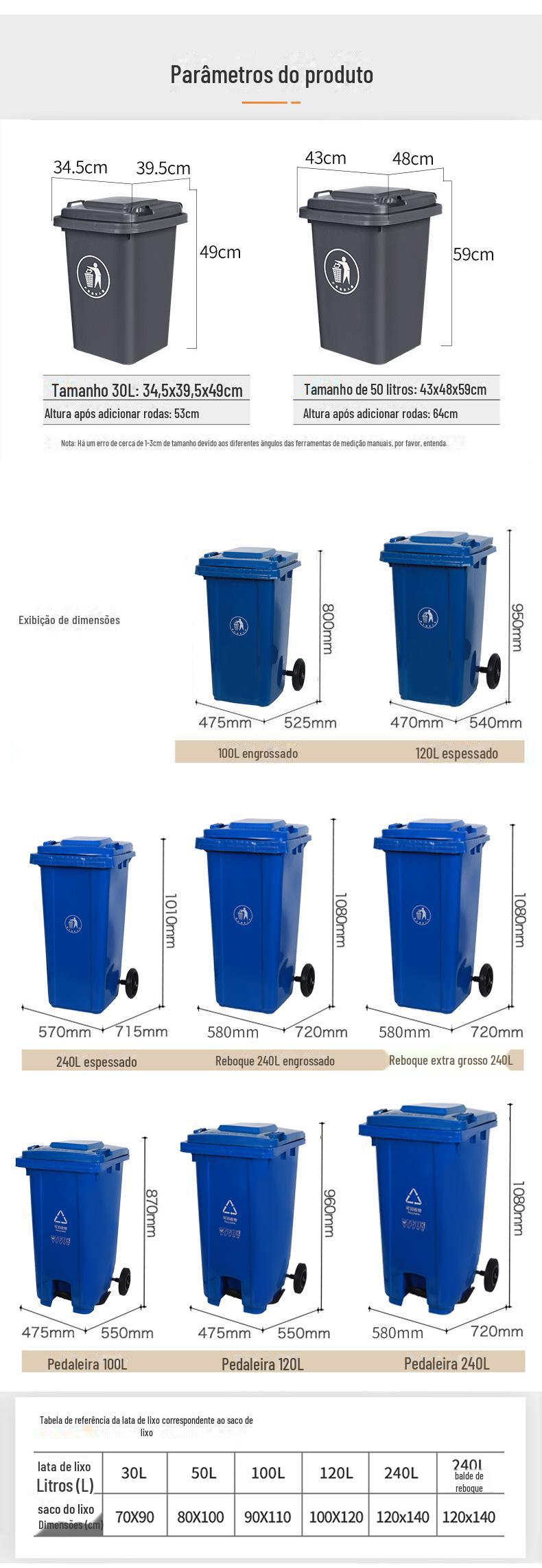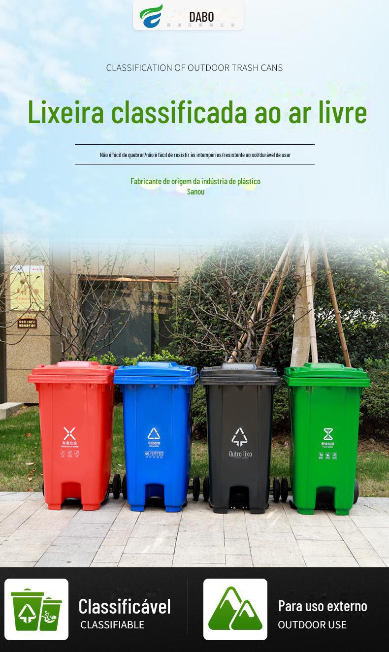 Lixeira externa multiespecificação reboque sanitário lata de lixo com tampa com rodas espessadas pedal classificação lata de lixo
