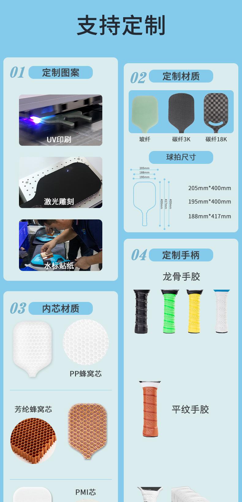 Pickleball racket set bag, Fiberglass (400*195mm), Carbon fiber (400*195 mm), Fiberglass (417*188mm), Carbon fiber (417*188mm)