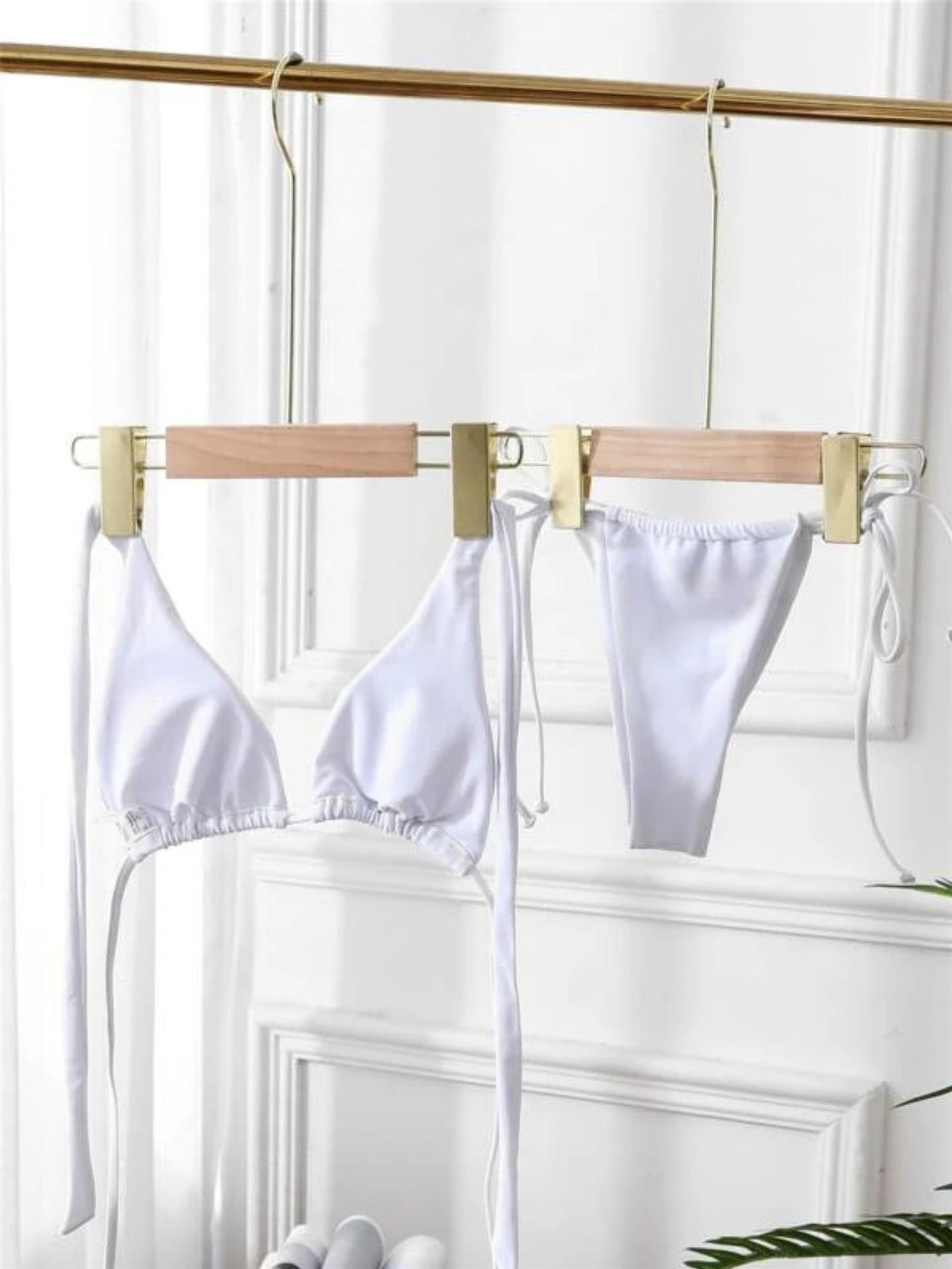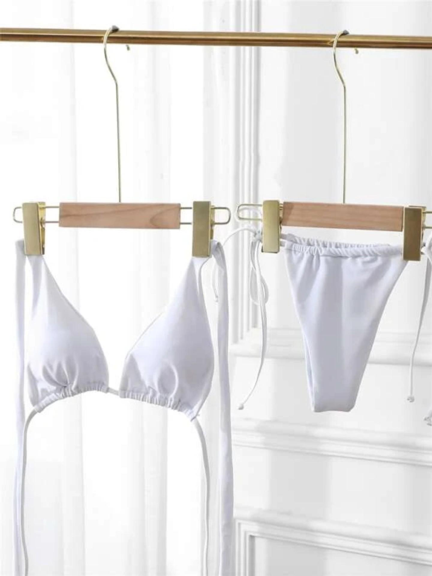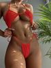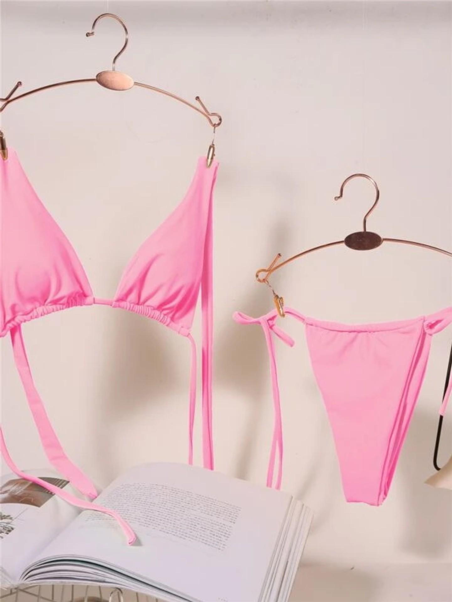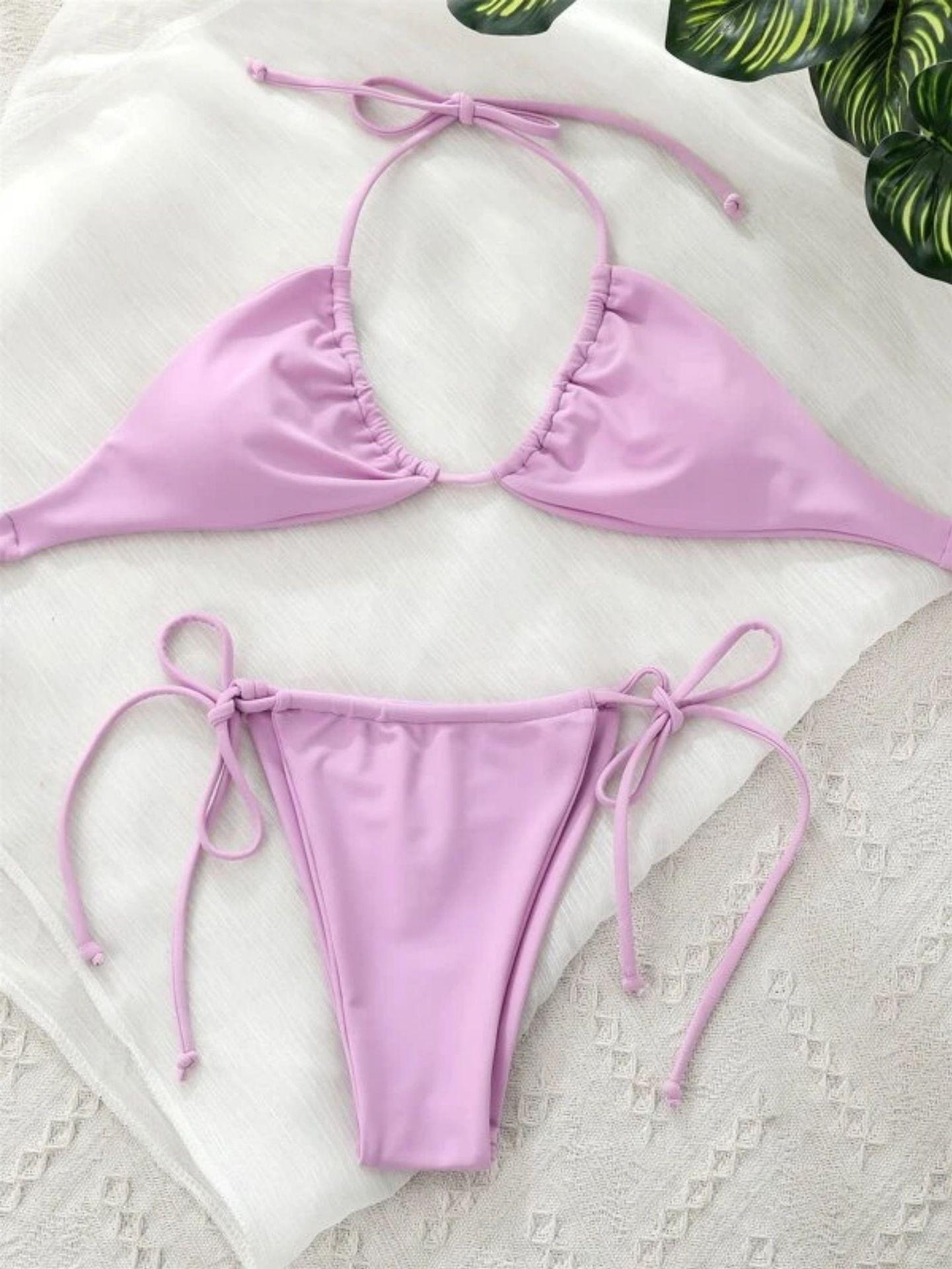 Novo maiô feminino europeu e americano, cor sólida, sexy, alças, costas nuas, fenda profunda, biquíni, praia, férias