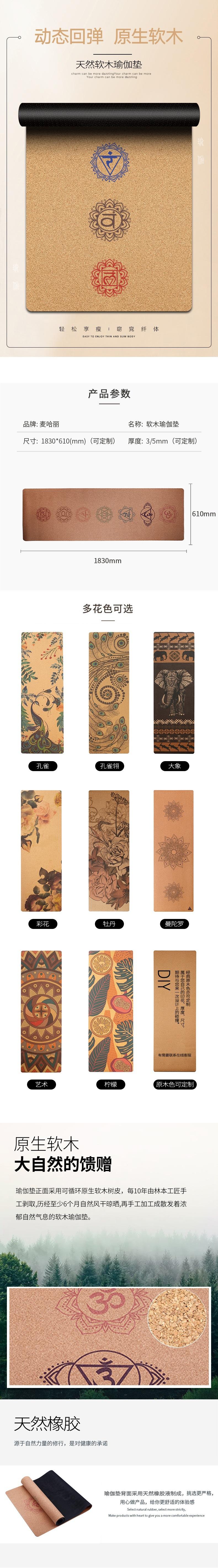 Novo tapete de ioga de borracha de cortiça impressa colorida transfronteiriça, suporta imagens personalizadas, espessura personalizável, tamanho, logotipo, etc.