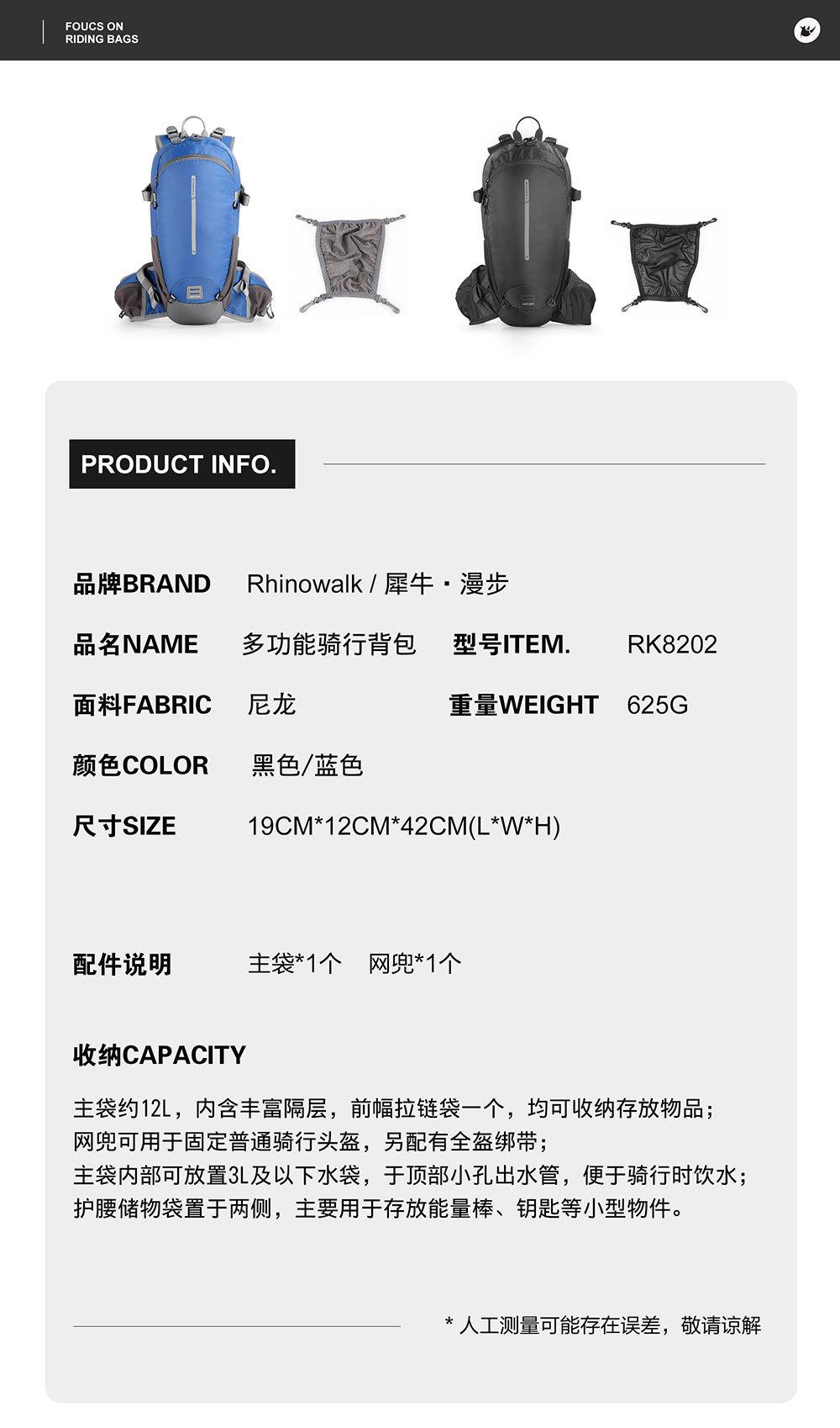 Rhinowalk/Rhino-walking mochila de ciclismo multi-funcional esportes ao ar livre respirável montanhismo saco de água