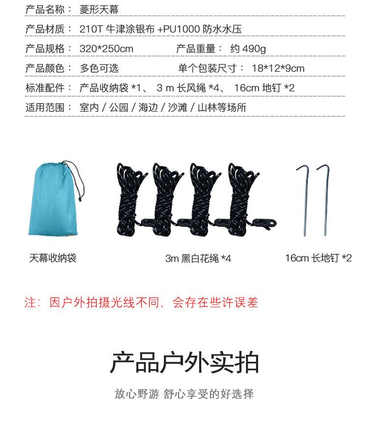 Dossel externo engrossado para construir Oxford pano prata revestido protetor solar tenda impermeável à prova de vento acampamento guarda-sol ultra-leve Diamante