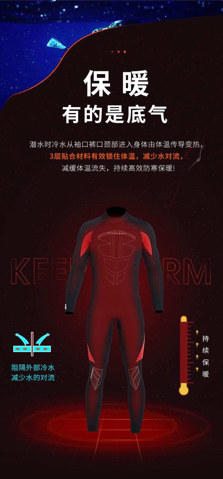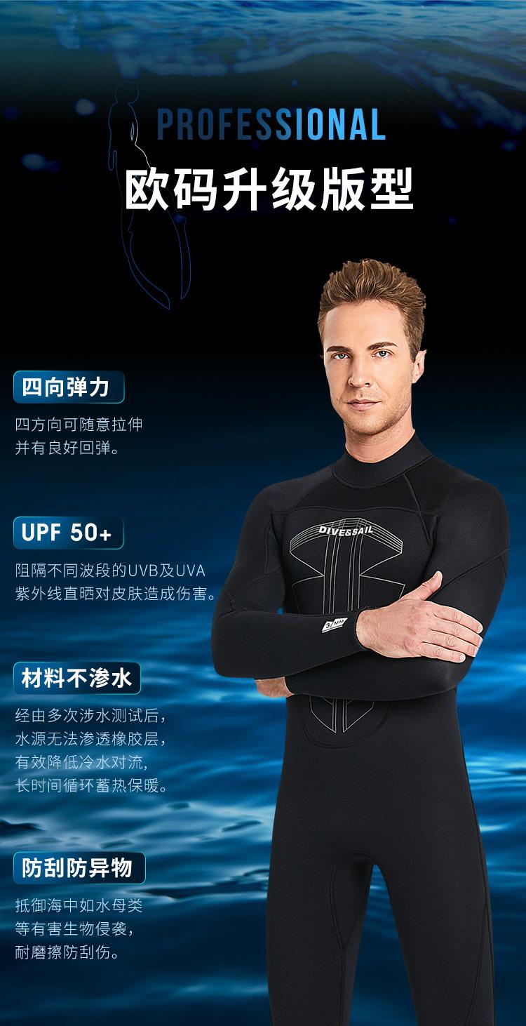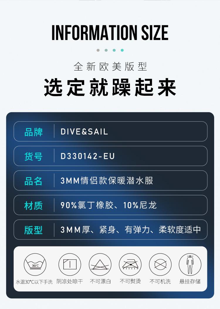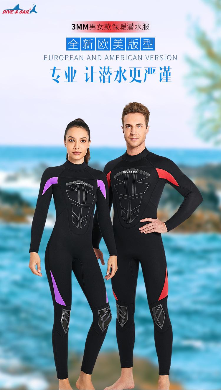 DIVE & SAIL versão europeia traje de mergulho masculino 3MM uma peça manga comprida terno de mergulho quente mulheres surfing snorkeling roupa de banho à prova de frio