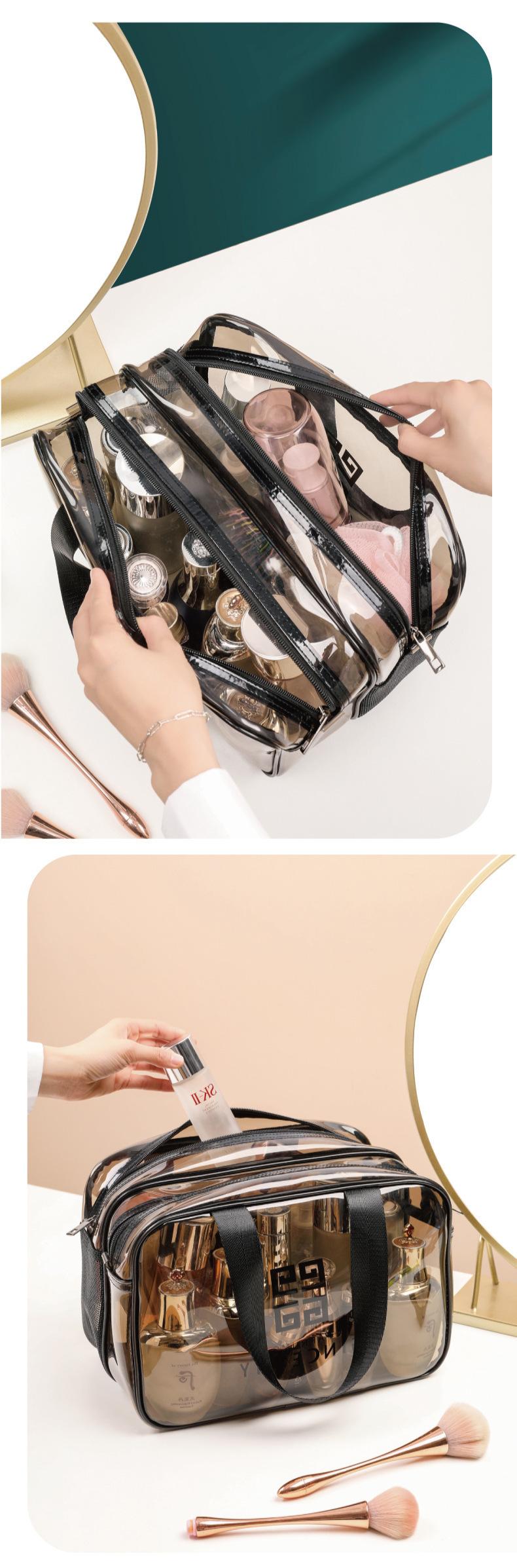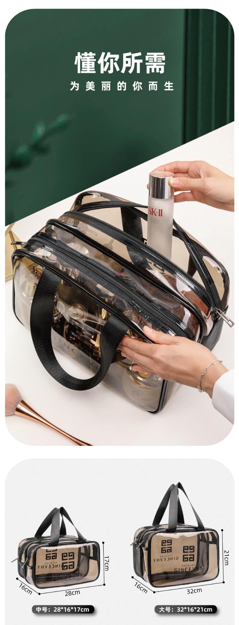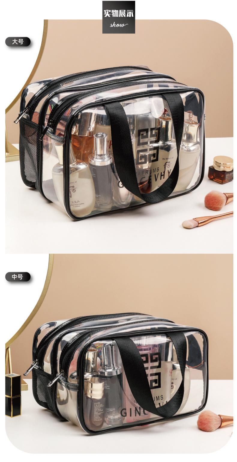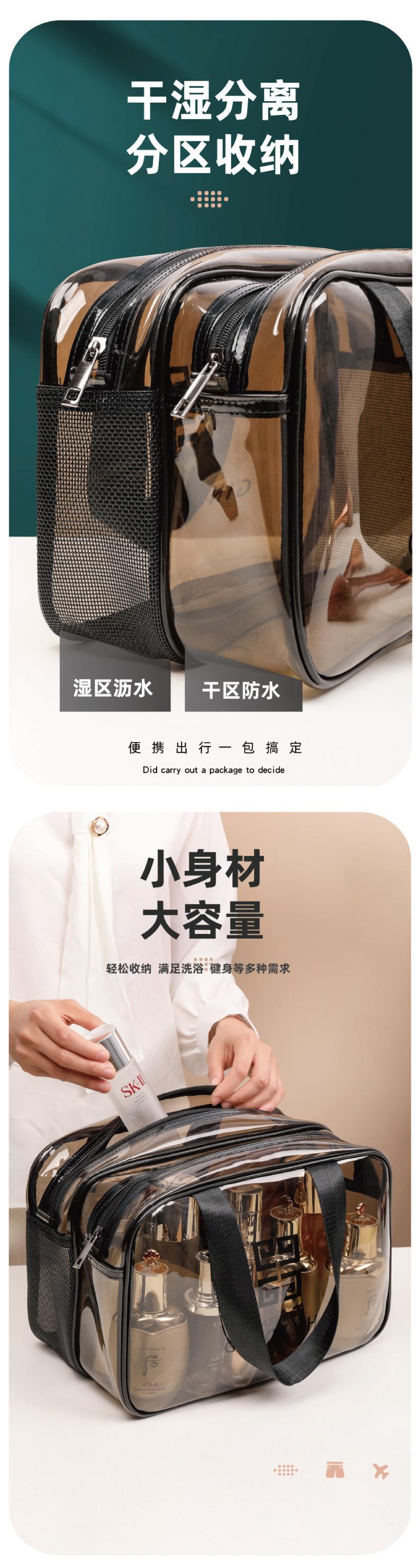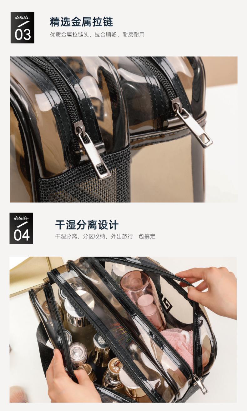 Nova separação seca e molhada transparente impermeável saco cosmético dupla camada grande capacidade portátil pvc com saco de armazenamento líquido saco de higiene