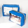 Nova separação úmida e seca transparente impermeável saco cosmético de camada dupla de grande capacidade PVC portátil com saco de armazenamento de malha saco de lavagem
