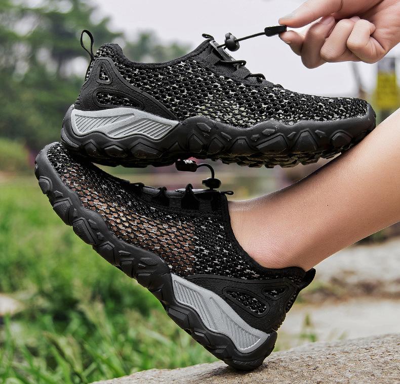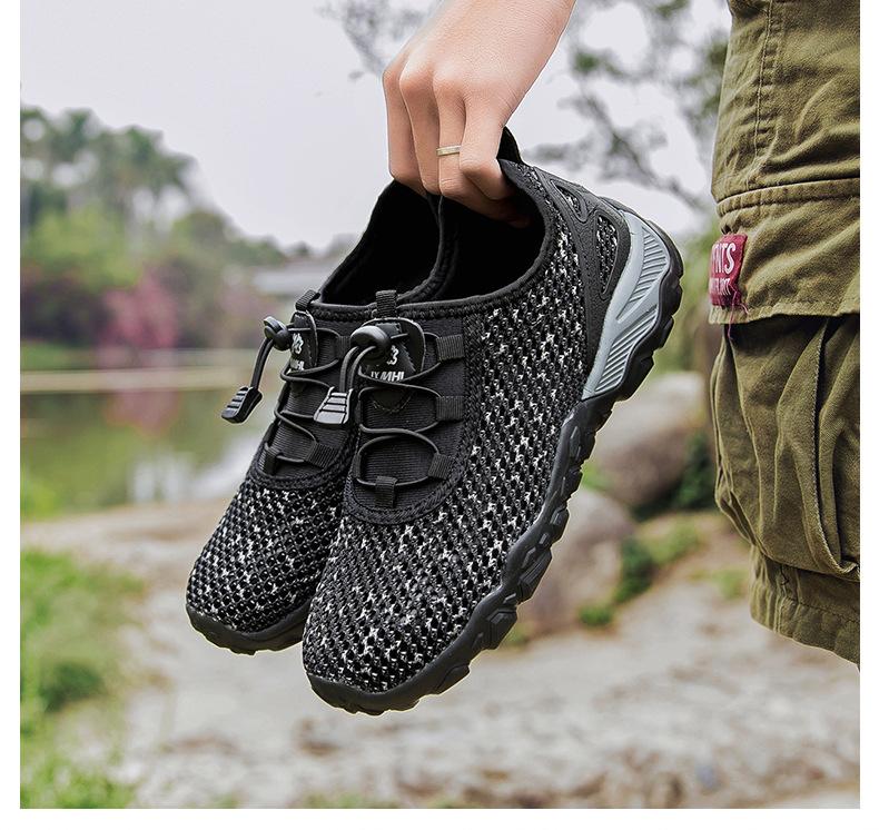 Sapatos de caminhada, slip-on, esportes ao ar livre, sapatos masculinos, sapatos de ar condicionado, malha, liso, respirável, moda masculina, esportes casuais, sapatos casuais