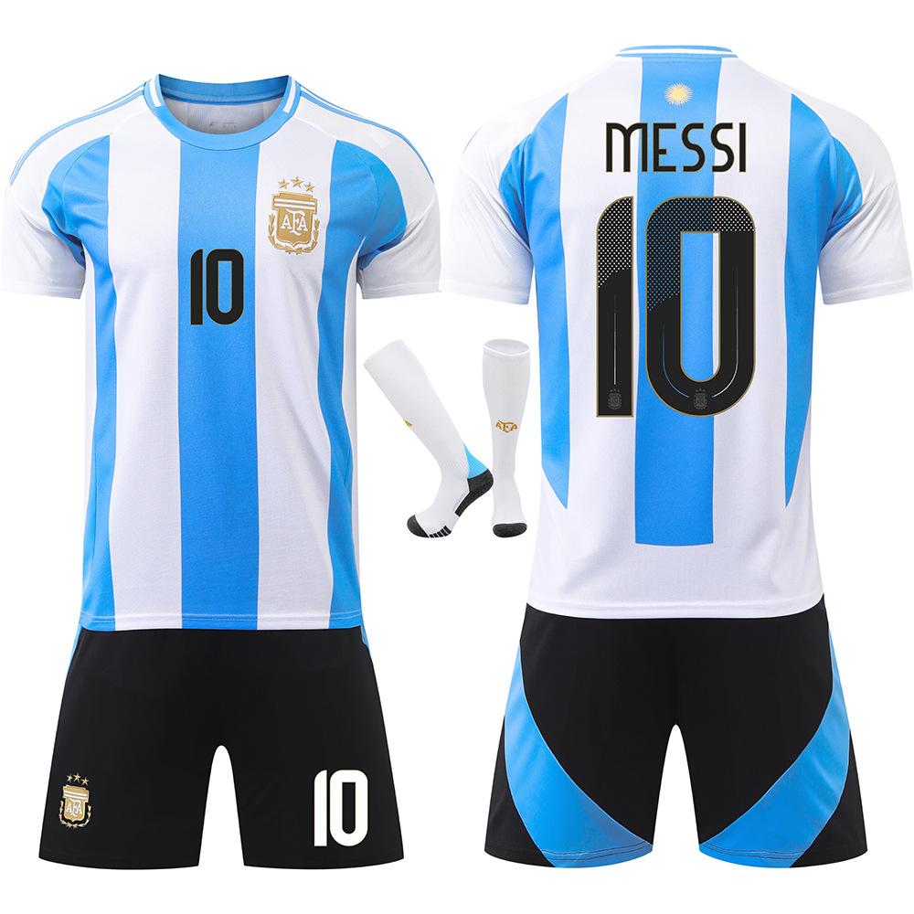 Compre 2024 Argentina Football Suit No. 10 Messi Messi 11 Di Maria America Cup Camisa Infantil Calça Preta no atacado no Joom.pro