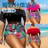 Maiô com babados e renda, novo, sexy, cor sólida, plissado, renda, decote em v profundo, botão, divisão, 2022