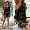 Blusa de Praia Seaside Europeia e Americana Transfronteiriça Feminina Saia de Franjas Crochê Puro Sexy Vazado Biquíni Exterior 200789