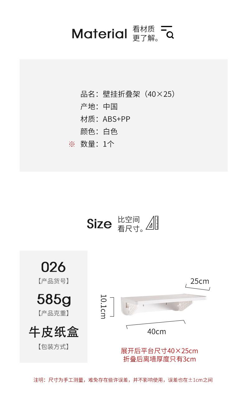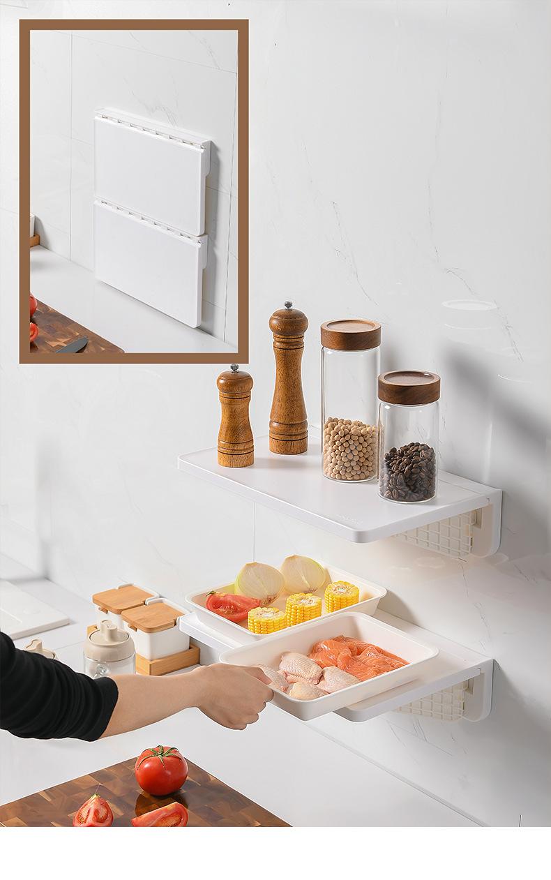 Prateleira de armazenamento dobrável Punch-free cozinha banheiro parede pendurada Placa de armazenamento 026