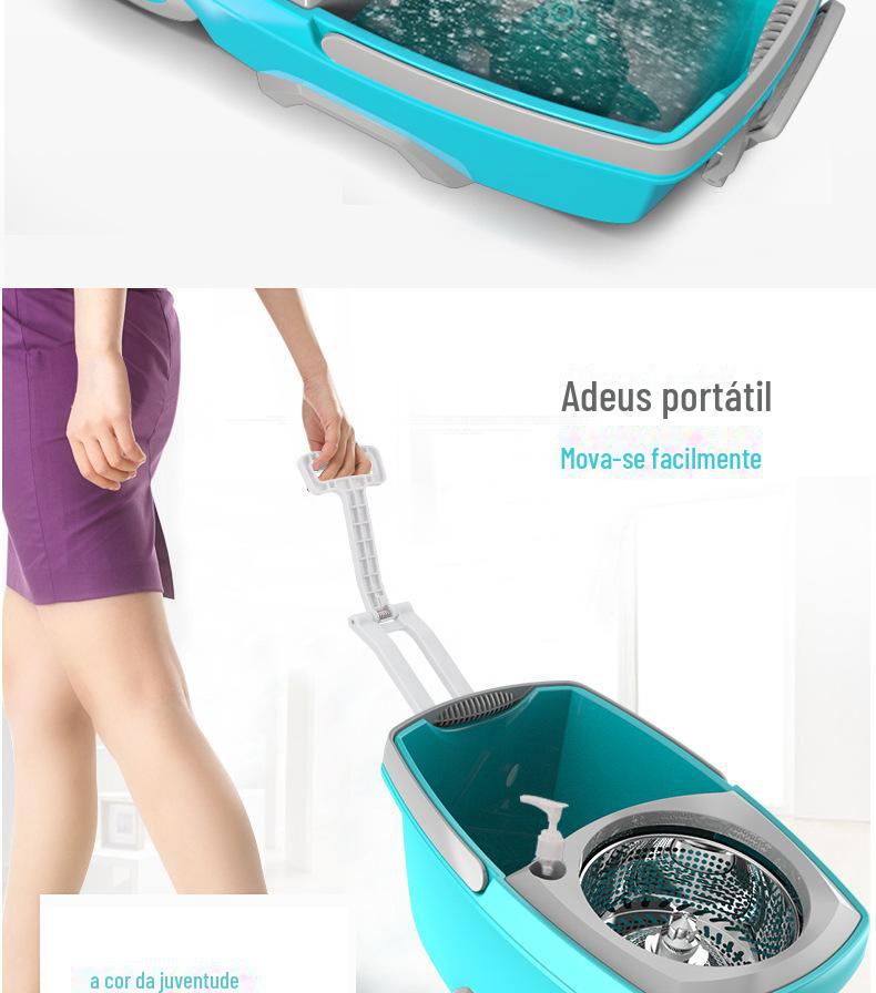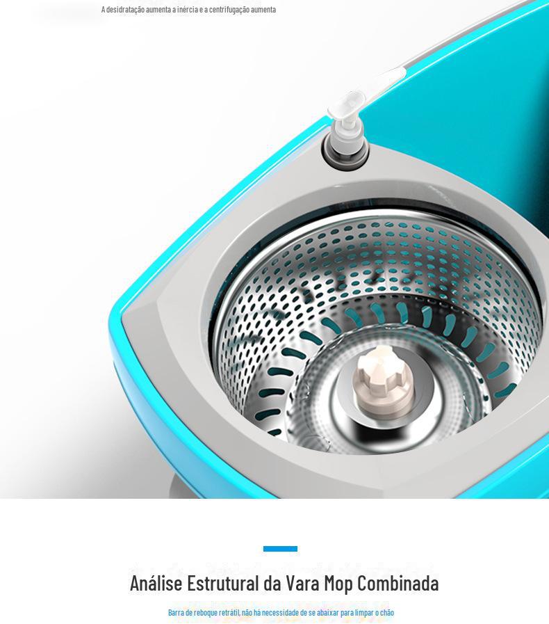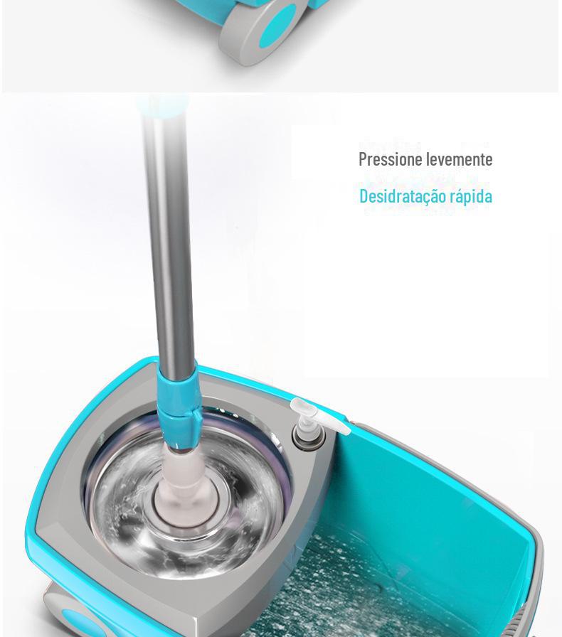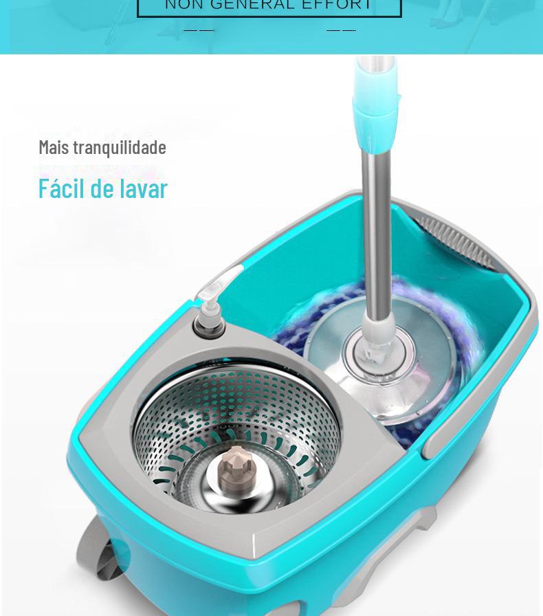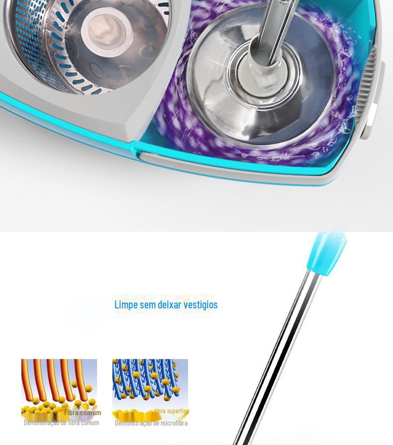 Mop com Lavagem Mãos-Livres, Mop Doméstico Giratório com Cesto de Metal, Balde para Mop Plano, Balde para Mop de Fibra Ultrafina com Dupla Rotação