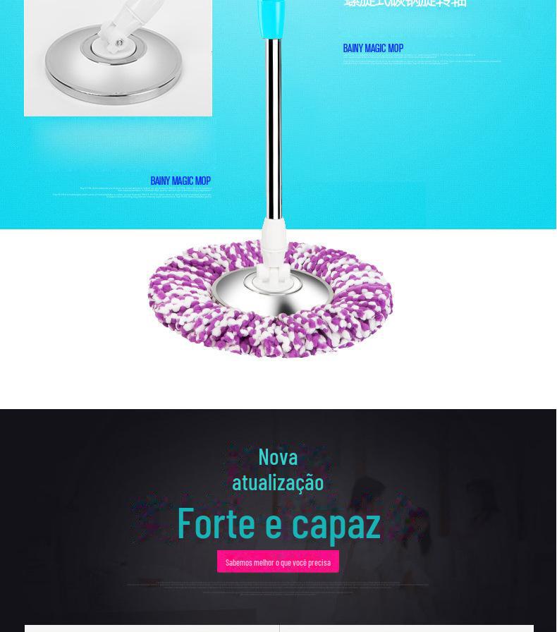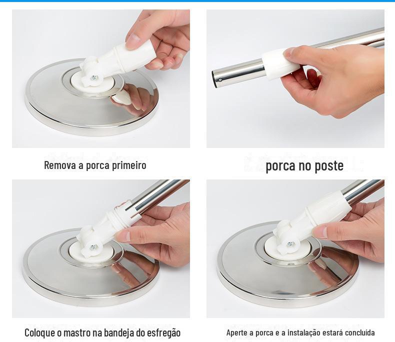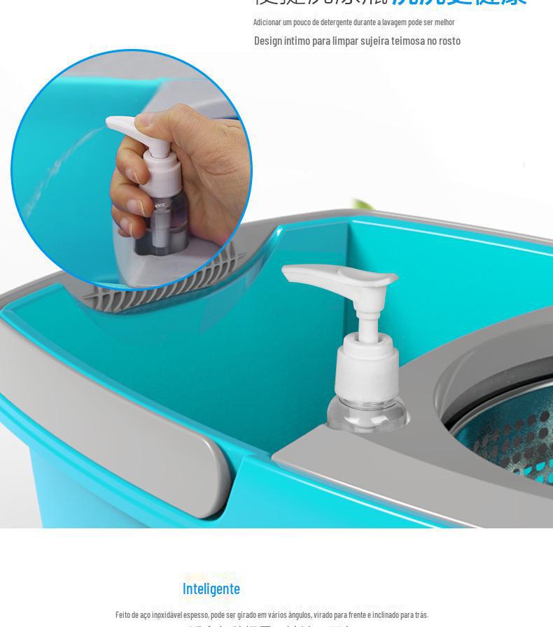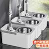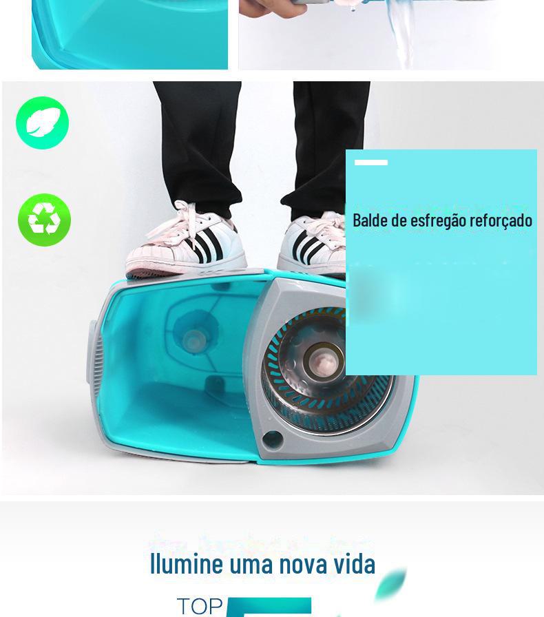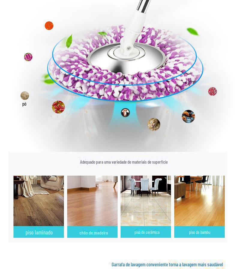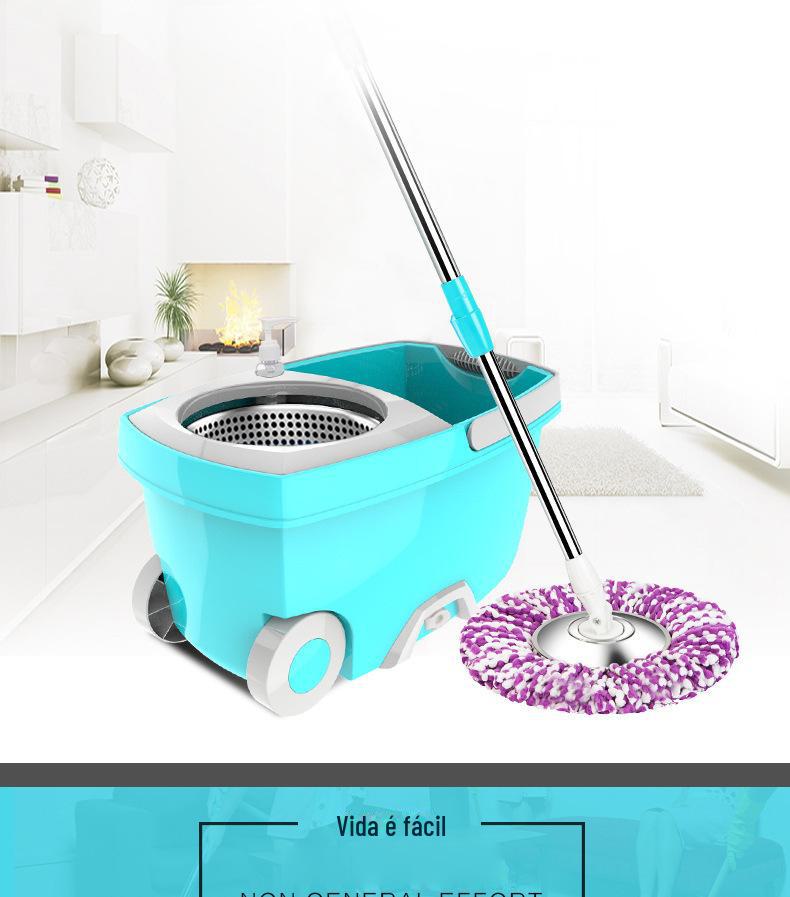 Mop com Lavagem Mãos-Livres, Mop Doméstico Giratório com Cesto de Metal, Balde para Mop Plano, Balde para Mop de Fibra Ultrafina com Dupla Rotação