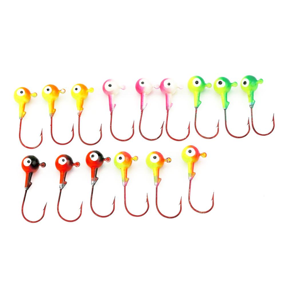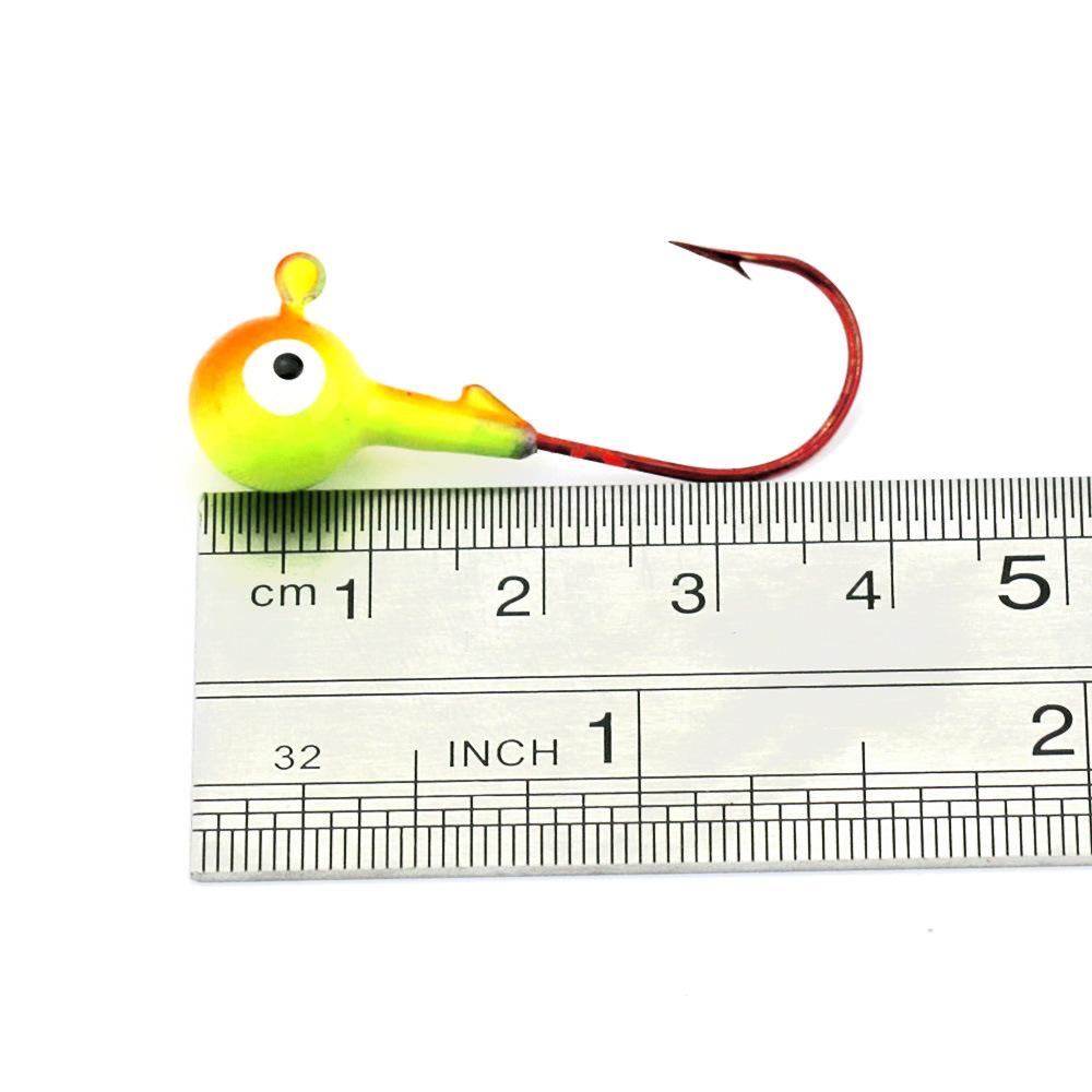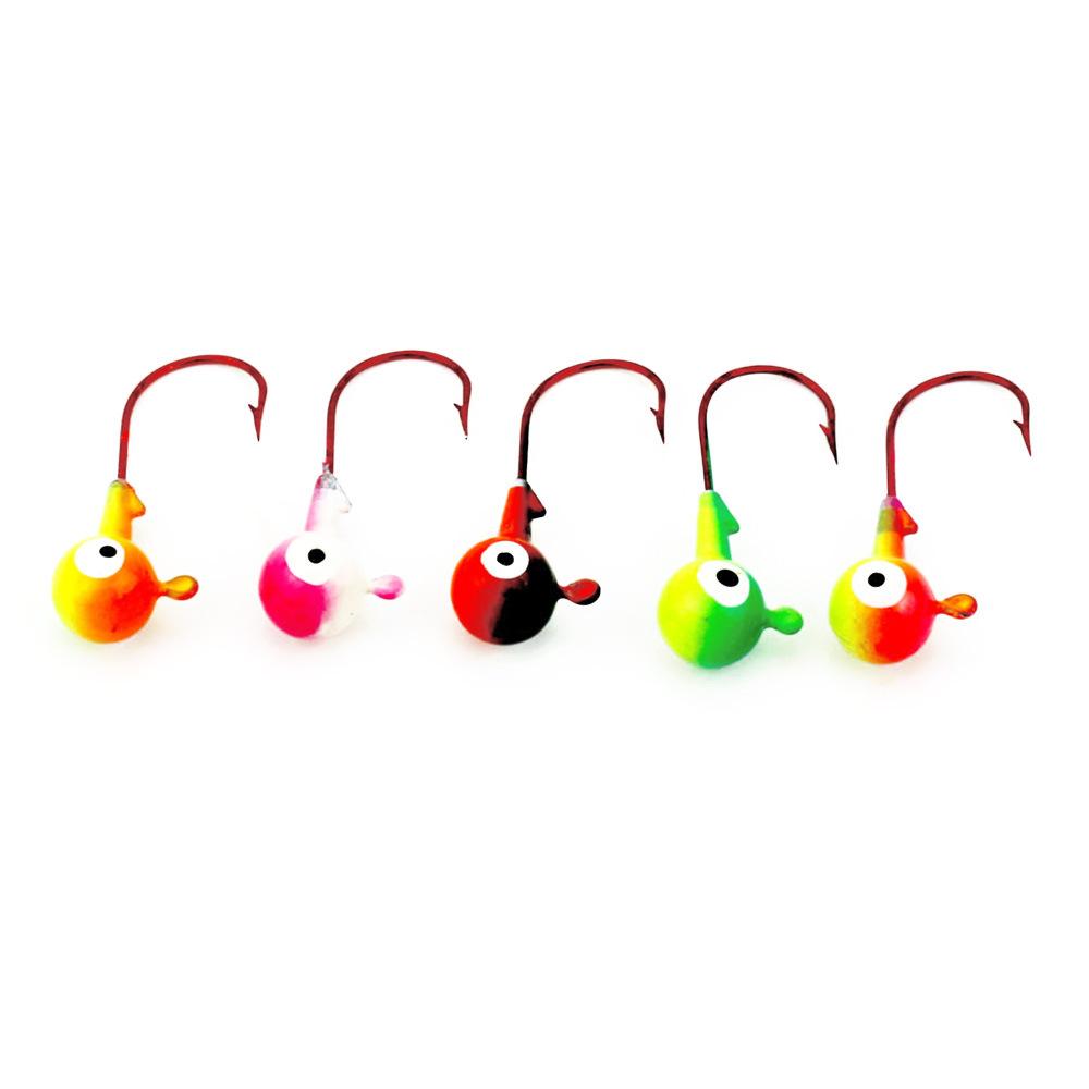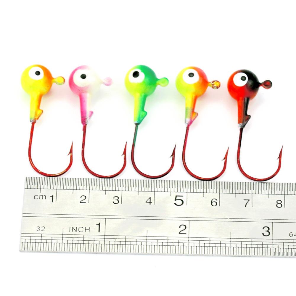 Hengjia Luya gancho caixa promocional 2,5 cm cabeça de chumbo gancho isca de peixe com farpa pesca 1,75 g/saco 5 peças