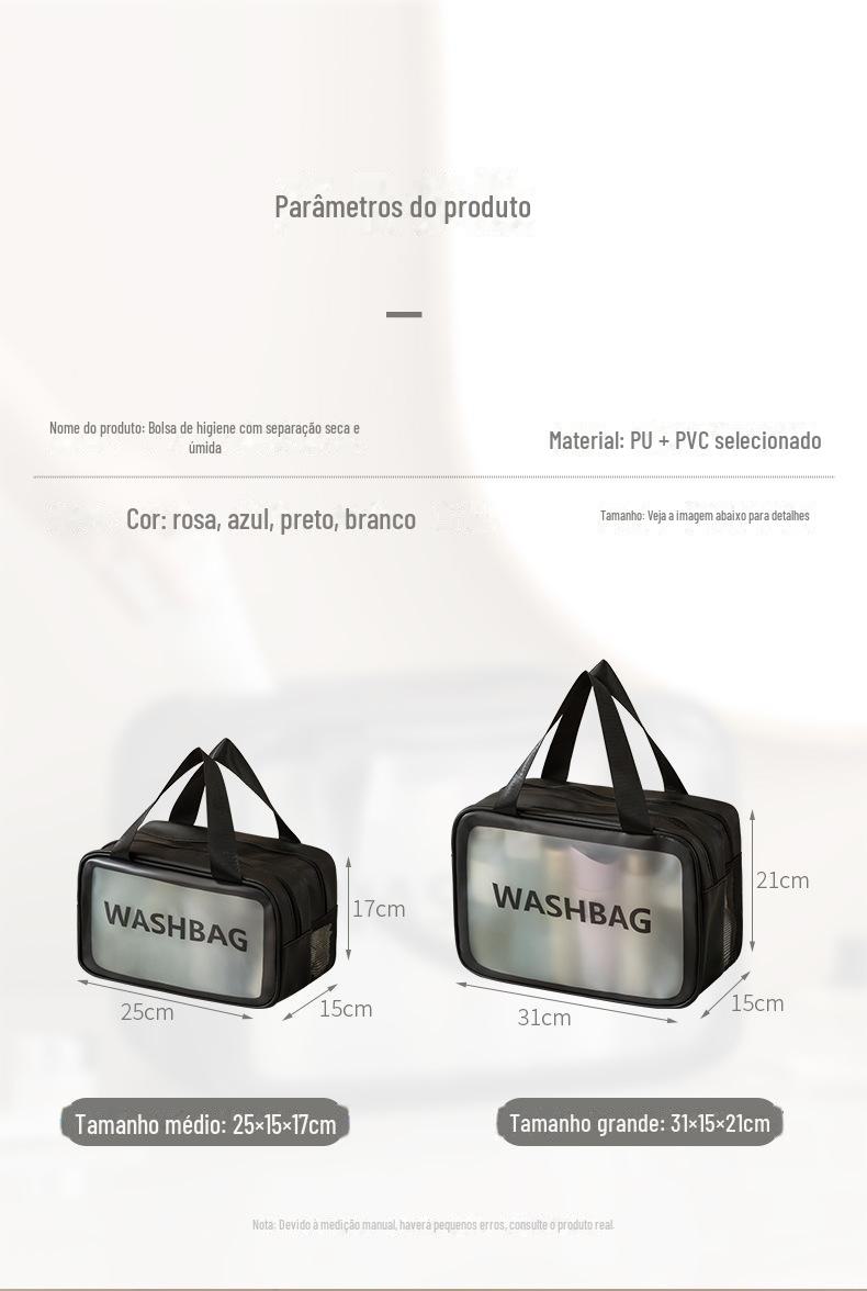 Separação úmida e seca impermeável transparente pvc multifuncional saco de lavagem natação viagem portátil cosméticos saco de armazenamento