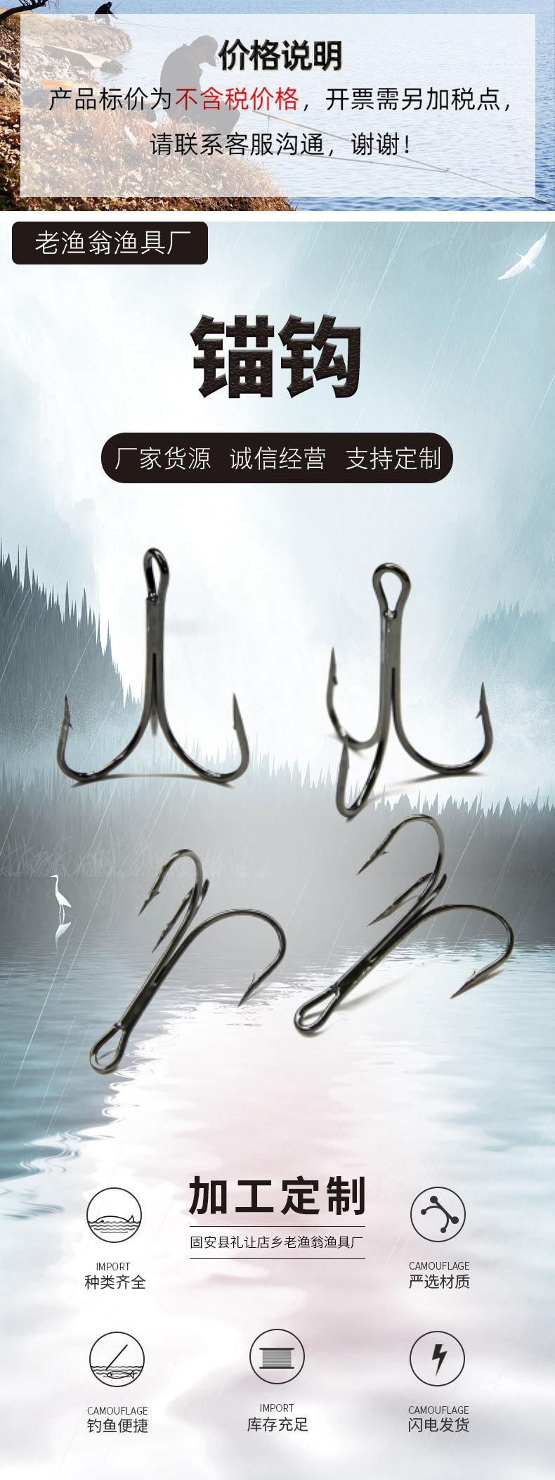 Três ganchos de ancoragem gancho Luya gancho grande de três garras gancho 3 gancho de garfo com Barb atacado
