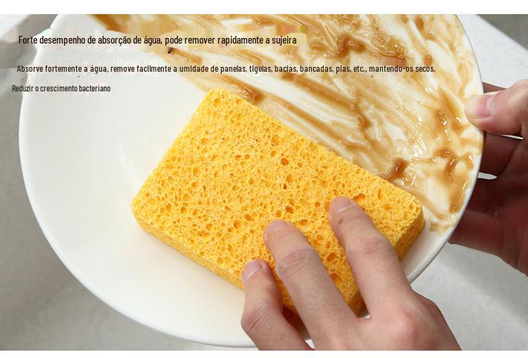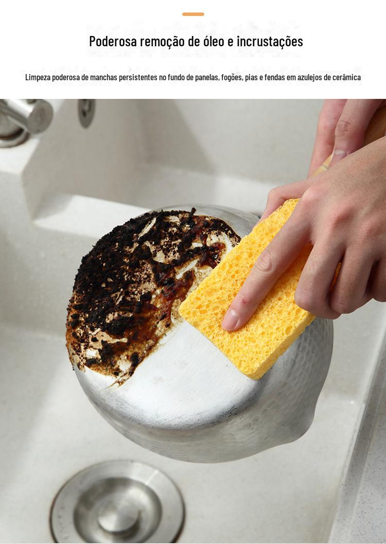 Esponja de lavar louça de polpa de madeira natural espessada, óleo antiaderente, limpeza mágica de cozinha, escova nano durável, esfregão de limpeza de panelas