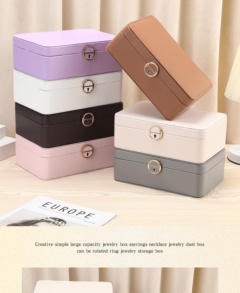 Compre Brincos Simples Simples para Casa Caixa de Armazenamento Colar Anel Dustproof Caixa de Joias de Grande Capacidade Caixa de Joias de Cor Sólida com Fechadura no atacado no Joom.pro