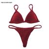 Biquíni Transfronteiriço Estilo Europeu e Americano Maiô de Duas Peças para Mulheres, Cor Sólida Sexy Roupa de Banho Conjunto de Três Peças Decote Halter Biquíni de Três Pontos