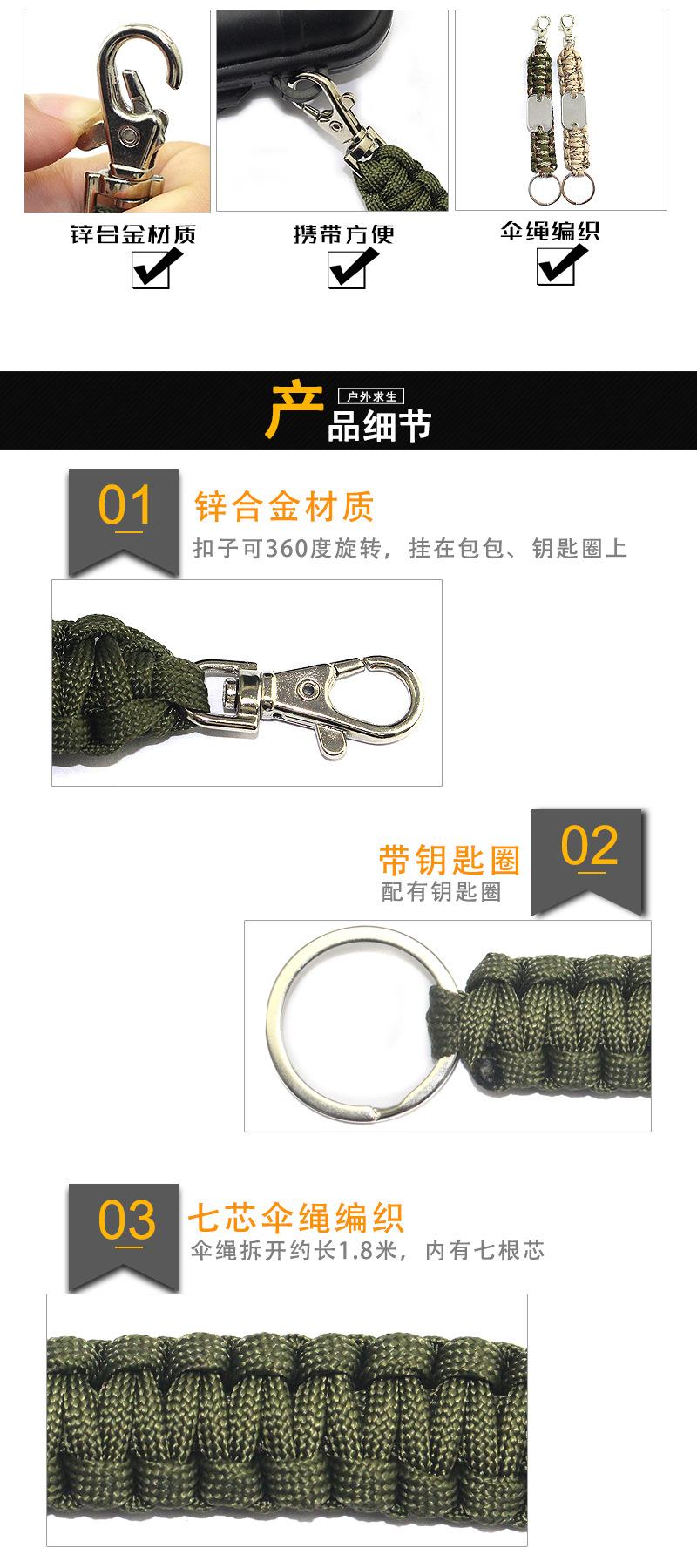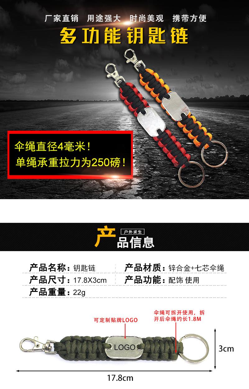 Equipamento de sobrevivência de acampamento ao ar livre sete núcleos guarda-chuva corda trançada chaveiro multi-função sobrevivência chaveiro local atacado