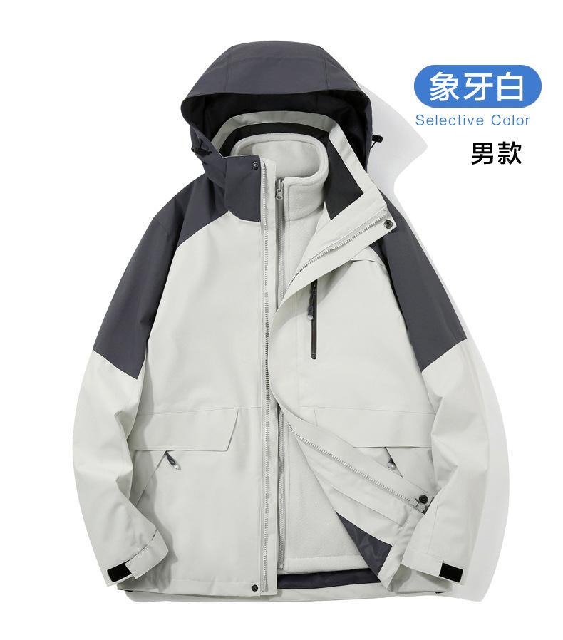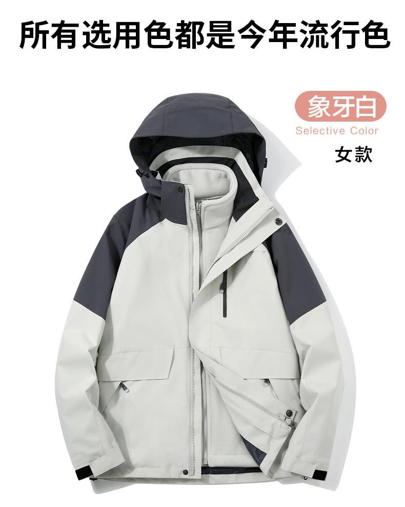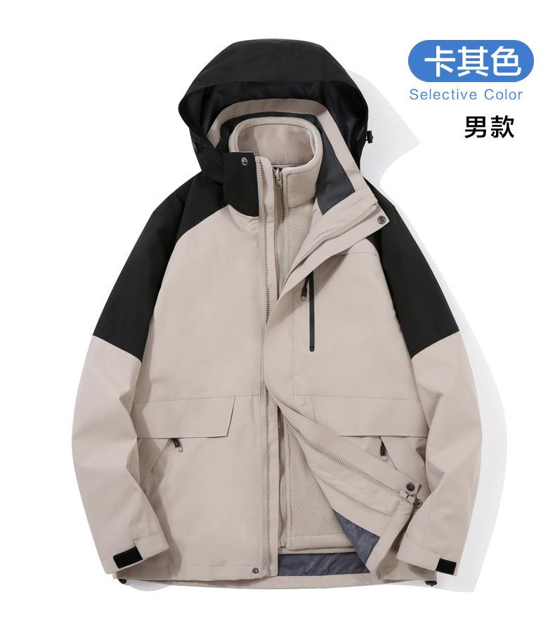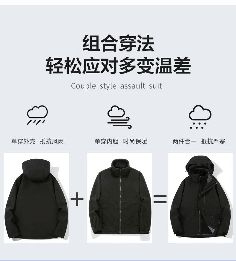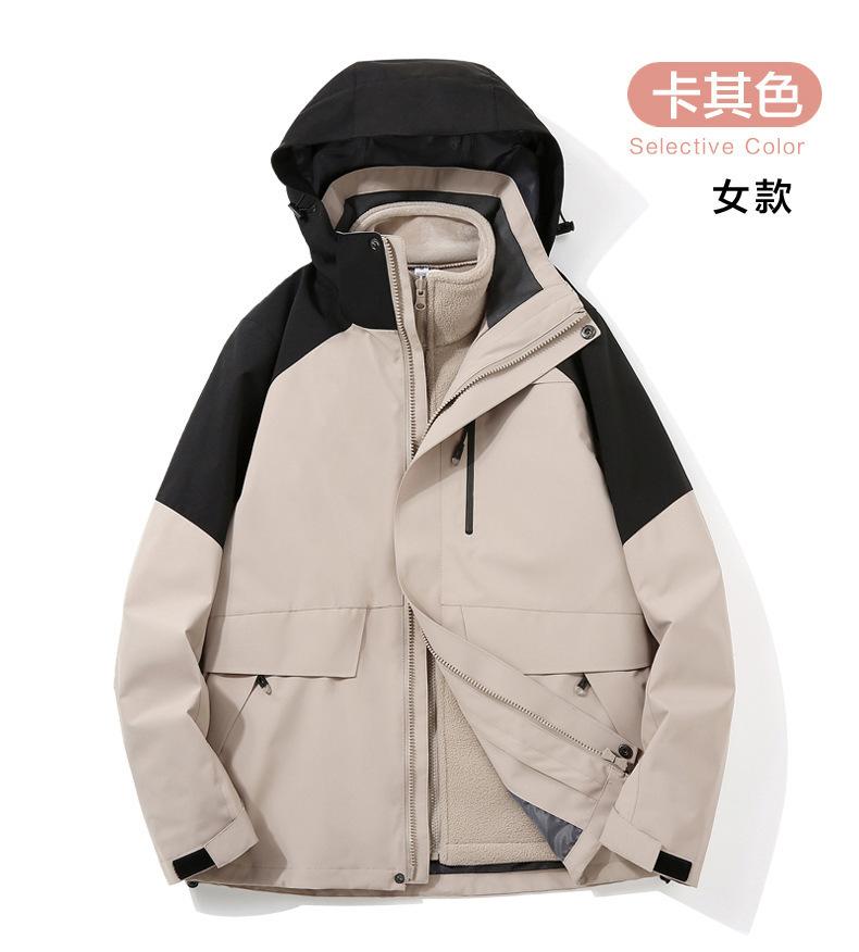 Jaqueta de montanhismo à prova de vento e água para áreas externas, masculina e feminina, forrada de lã, espessa, três em um, destacável, duas peças