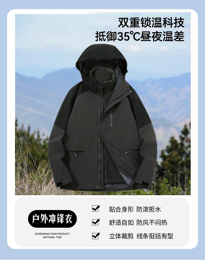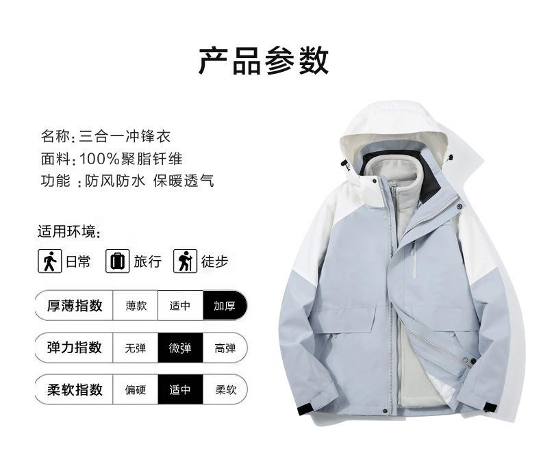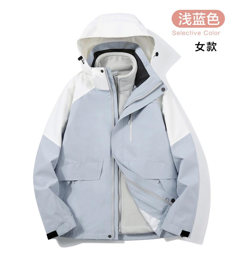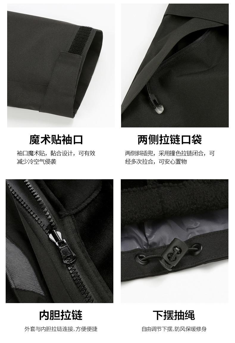 Jaqueta de montanhismo à prova de vento e água para áreas externas, masculina e feminina, forrada de lã, espessa, três em um, destacável, duas peças