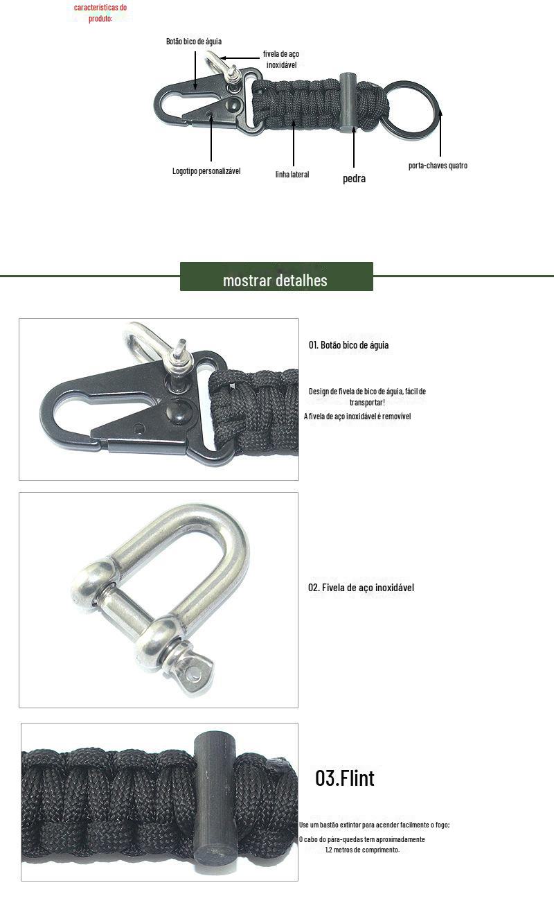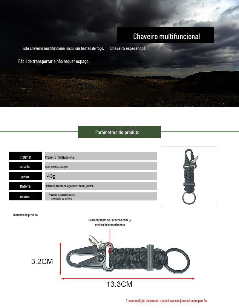 Montanhismo ao ar livre suprimentos de acampamento náilon paracord trançado fogo vara chaveiro multifuncional trançado chaveiro
