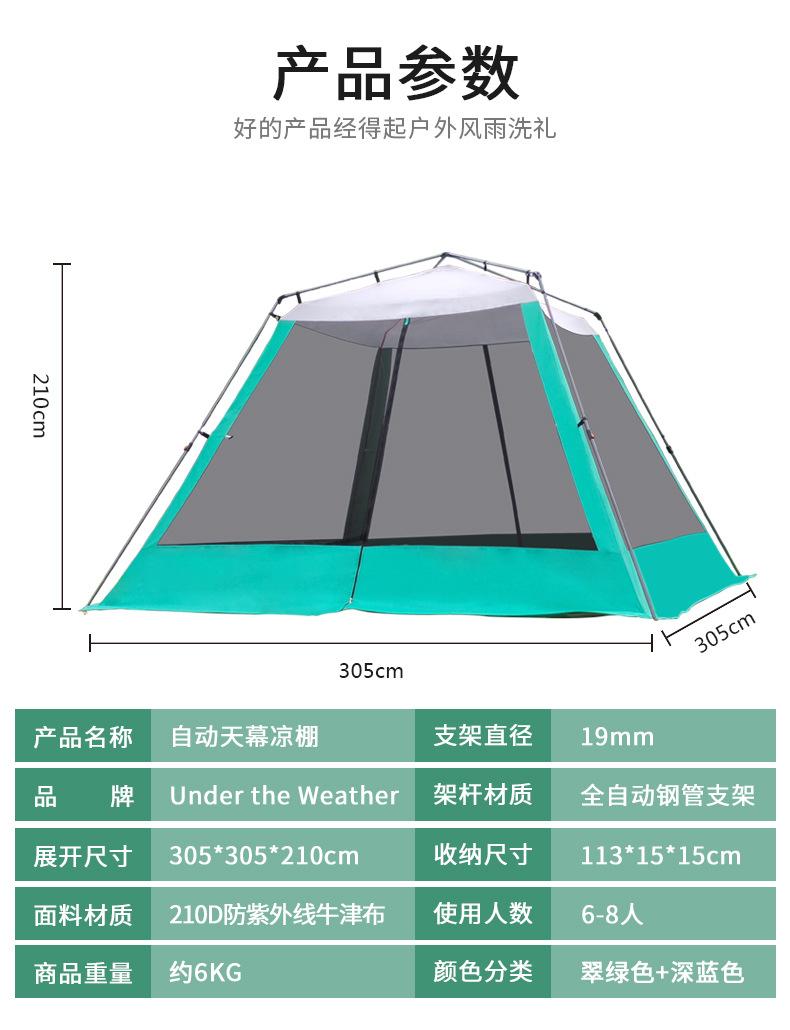 Tenda de dossel ao ar livre totalmente automática Camping à prova de chuva cola de prata Proteção solar Proteção contra mosquitos Ampliar toldo