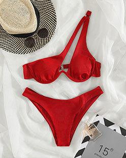 2023 Europeu e americano de venda quente multi-cor sexy triângulo feminino split maiô cor sólida um ombro suporte de aço biquíni maiô