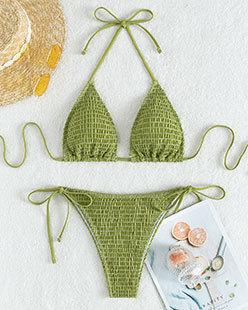2024 Amazon Nova Cor Sólida Pescoço Costas Biquíni Swimsuit Sexy Triângulo Praia Swimsuit Mulheres