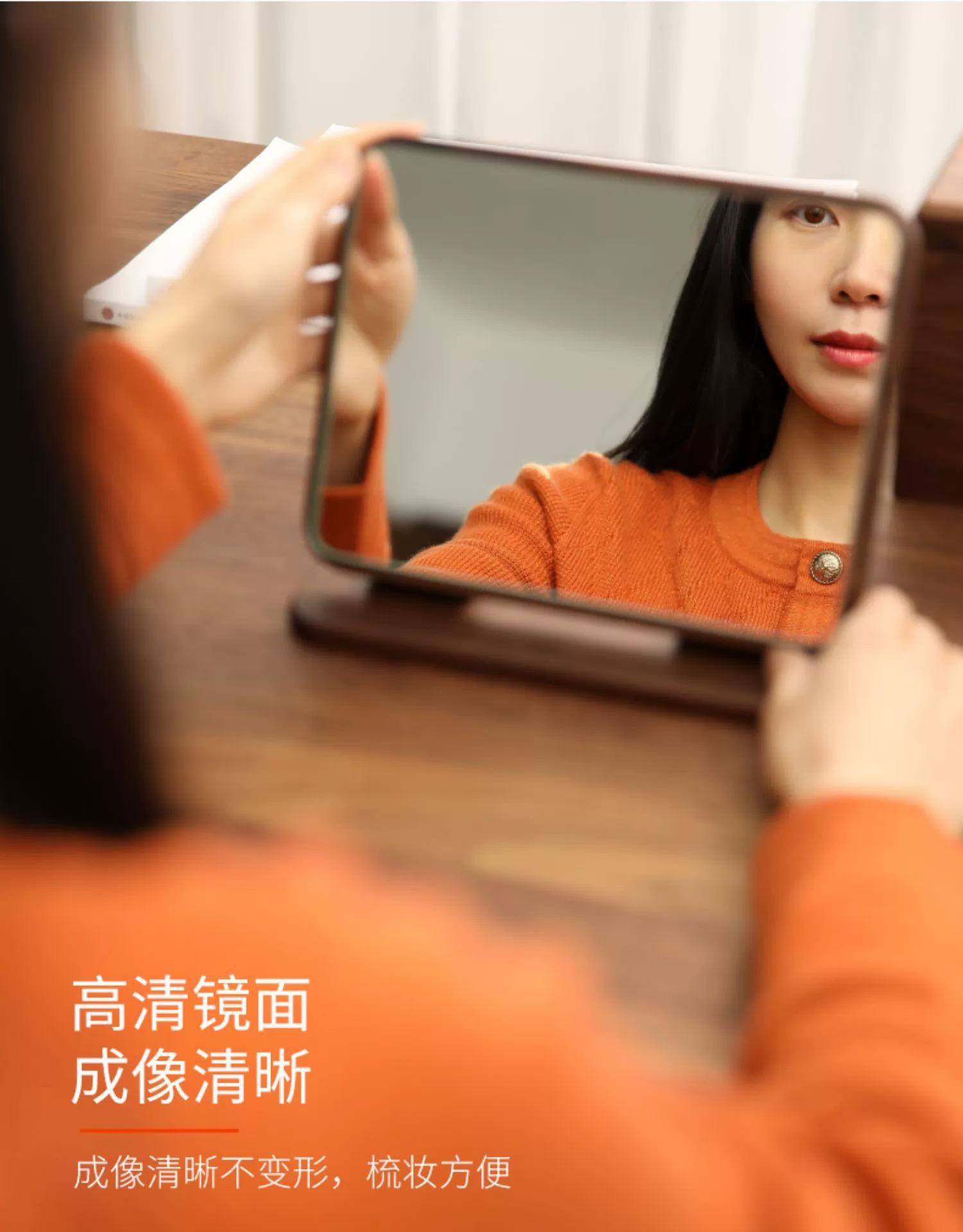 Madeira maciça maquiagem espelho Home Retro Desktop dobrável de alta definição Espelho de vestir preto nogueira portátil espelho portátil