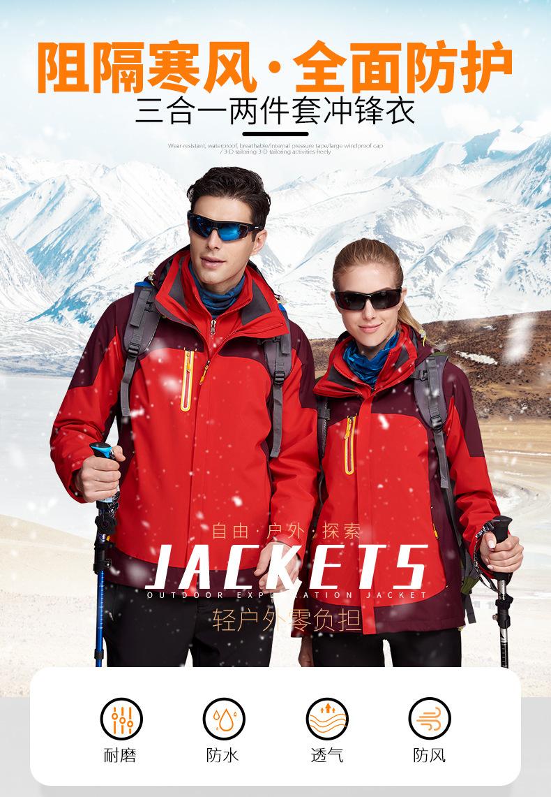 Jaqueta para Homens e Mulheres, Roupa Espessa para Montanhismo e Esqui, Conjunto de Duas Peças, Design 3 em 1 para Exterior com Logotipo Estampado