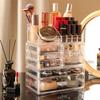Caixa Organizadora de Cosméticos, Tipo Gaveta de Plástico, Empilhável e Combinável, Caixa Display para Armazenamento de Joias e Batons, Display Transparente