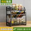 Rack de Armazenamento de Especiarias de Cozinha Estilo Preto Rack de Armazenamento para Bancada Rack de Armazenamento Multifuncional para Garrafas Rack de Especiarias de Parede Sem Pregos