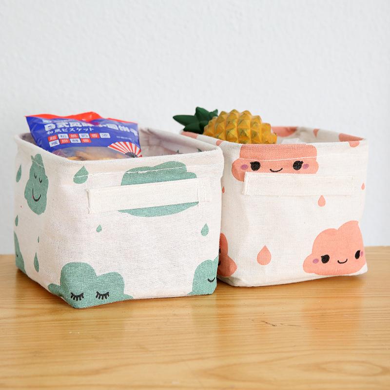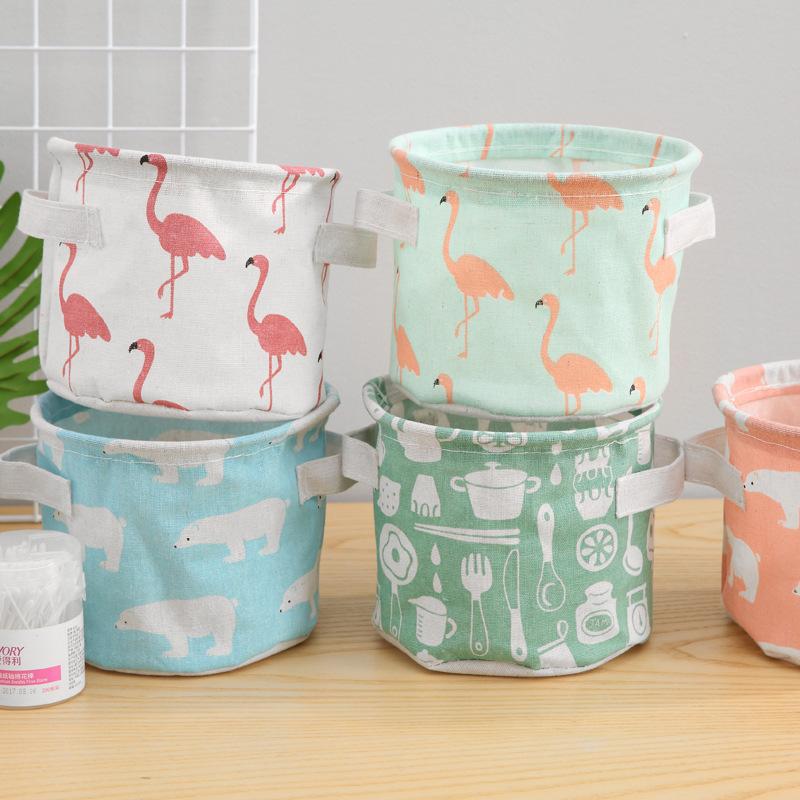 Compre Desenhos animados algodão fresco e linho com alça Desktop Sundries Cesta de armazenamento caixa armário roupas pequenas cesta de armazenamento de tecido no atacado no Joom.pro